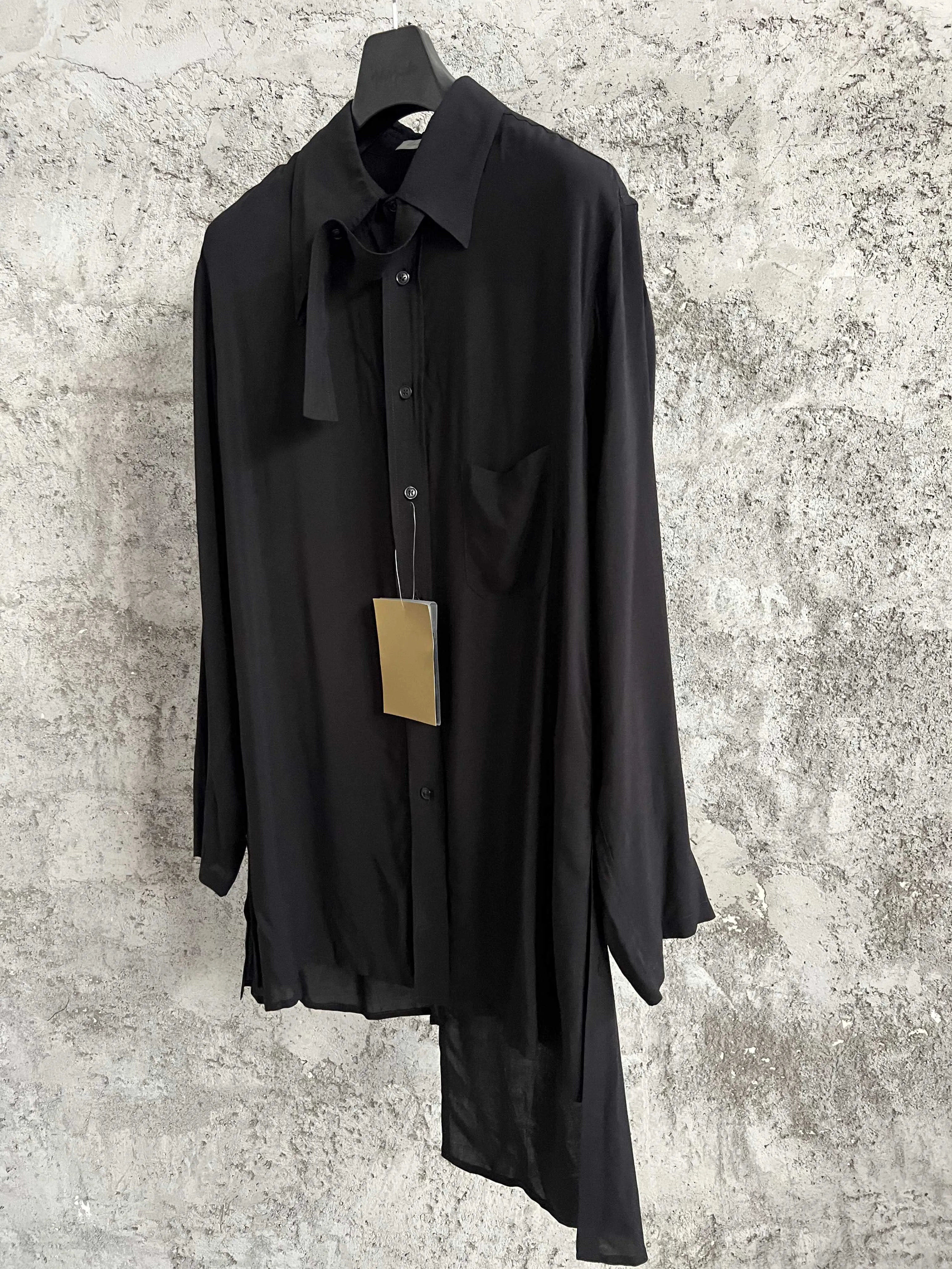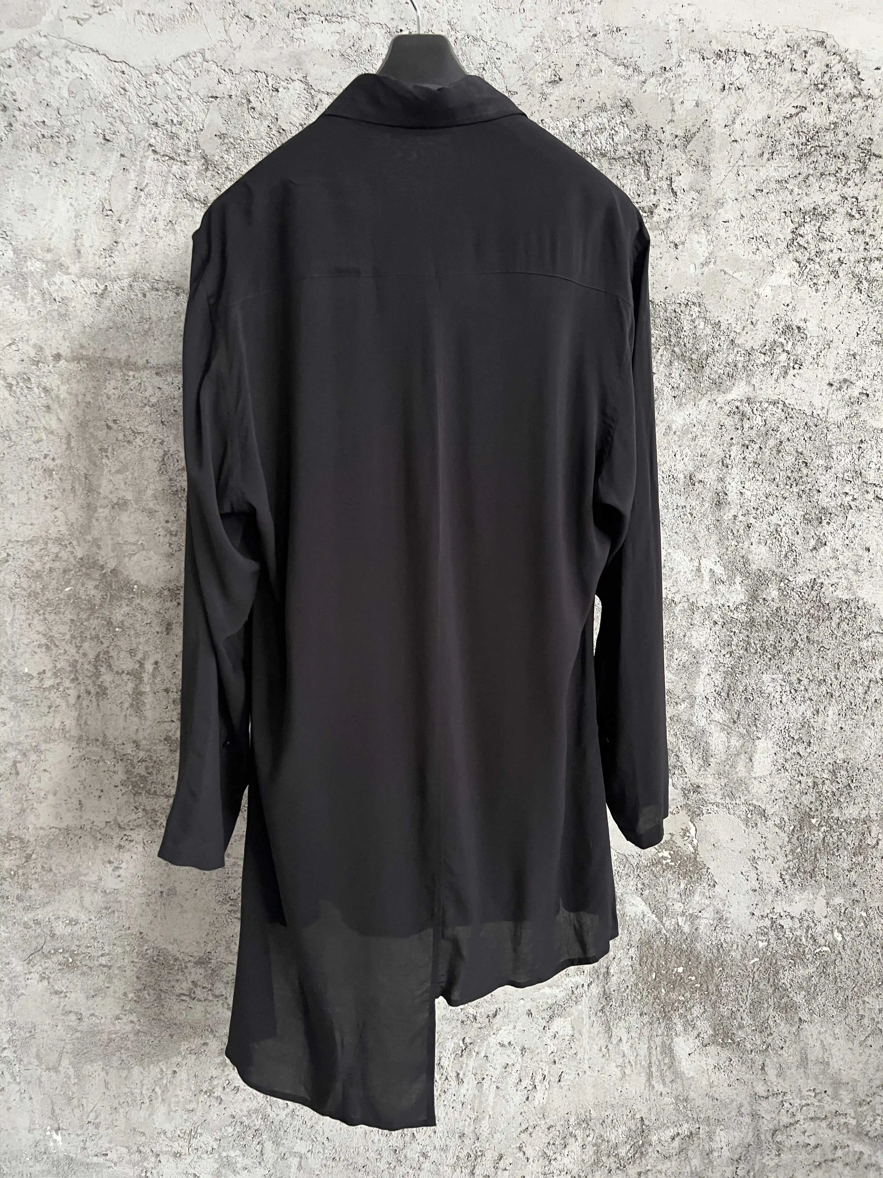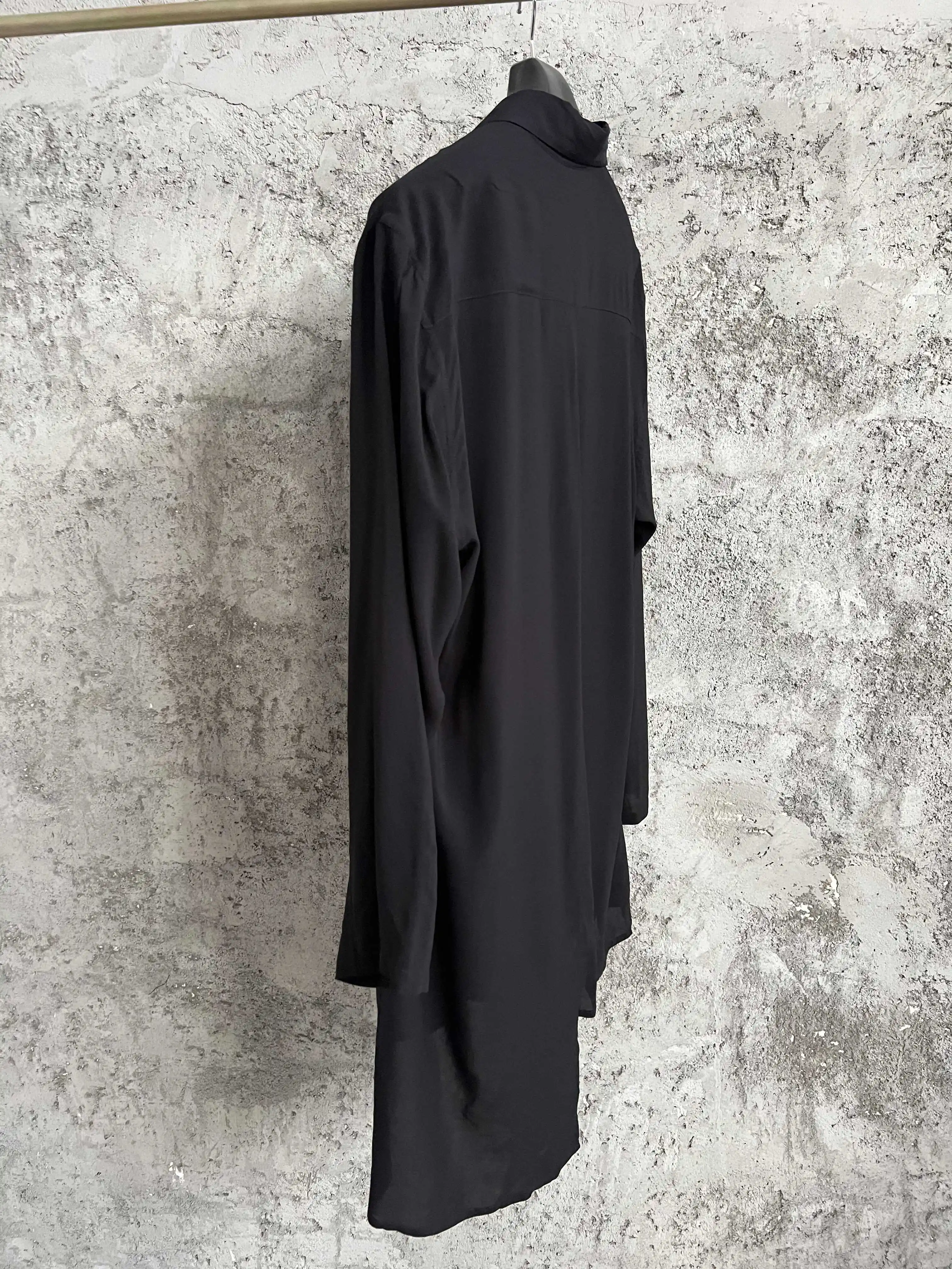 Original design black square collar casual long-sleeved loose plus-size shirt, a niche drape shirt