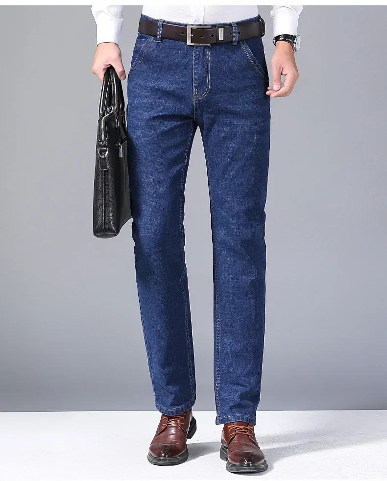 2026 Spring Autumn New Mens Black Blue Pants Pure Color Stretch Jeans Street Casual Slim Fit Trousers Male Wash Jeans for Men