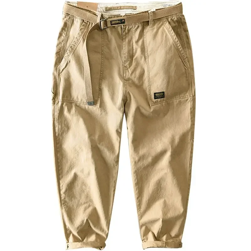 Autumn Summer Wide Leg Cotton Work Trousers Men's Cone Straight Loose Wear Resistant Pocket Pants Retro Wash Casual Workwear