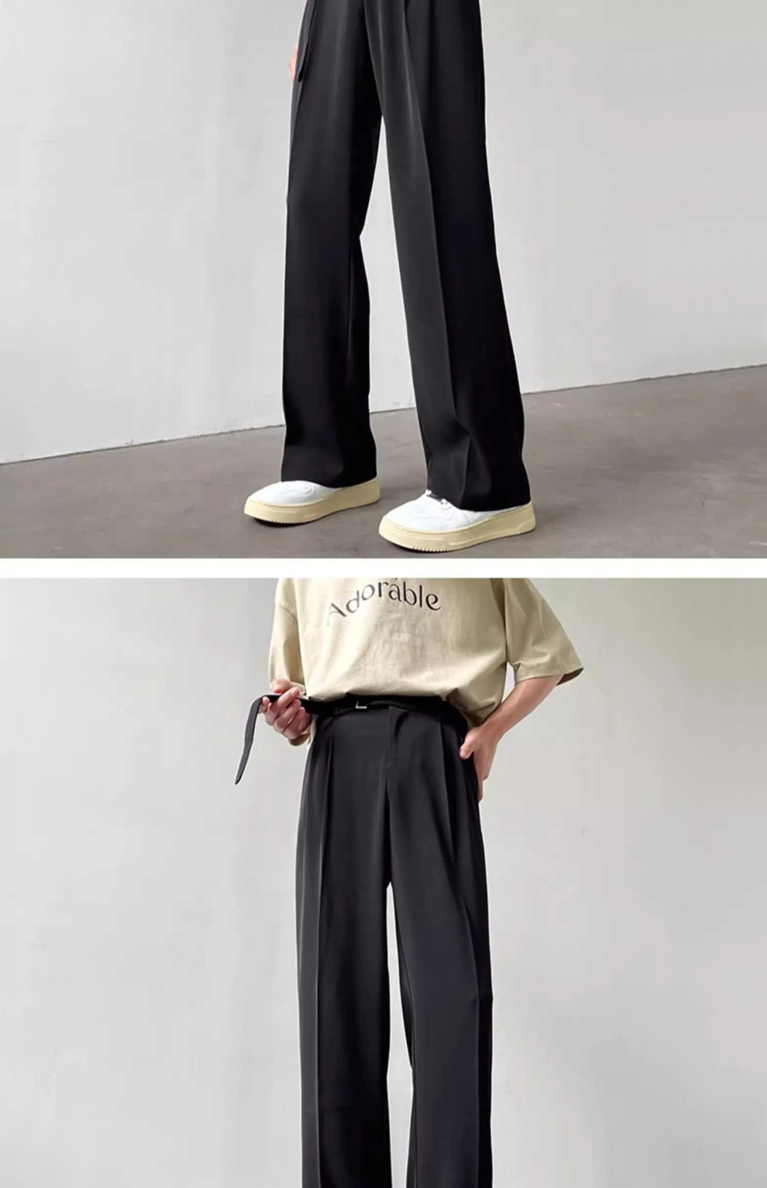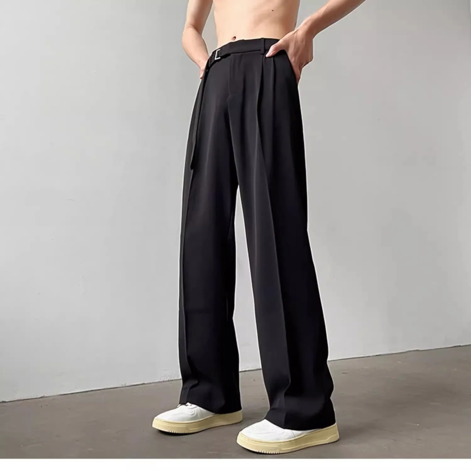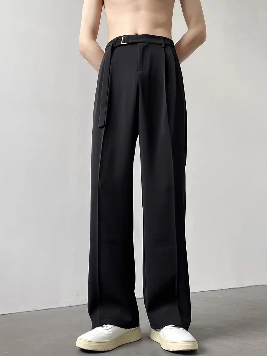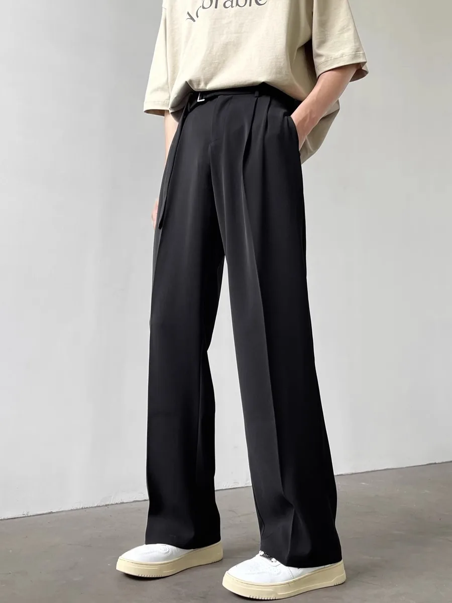 Retro High-end Belt Design Straight-down Trousers Men's Trendy Brand Loose Wide-leg Casual Pants Original Luxury Brands Jeans