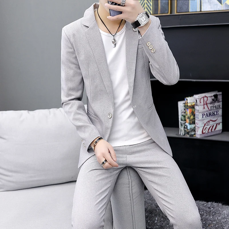 2024 High quality casual suit for men (suit + trousers) Young solid color handsome Korean version fashion slim two-piece set