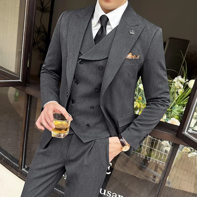(Jackets+Pants+Vest) High Quality Men Slim Fit Party Tuxedos 3 Pieces Fashion Double Breasted Vest Design Wedding Social Suit