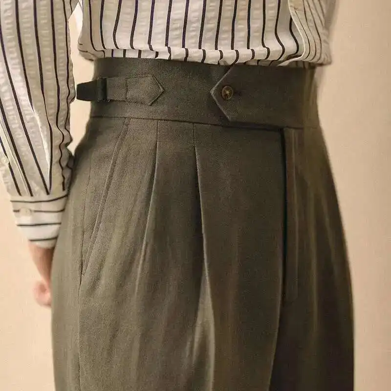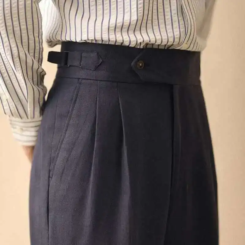 Linen Straight Pant For Men 2024 Summer Business Gentleman Naples Pant Paris Buckle Drape High Waisted Trousers Men Formal Pant