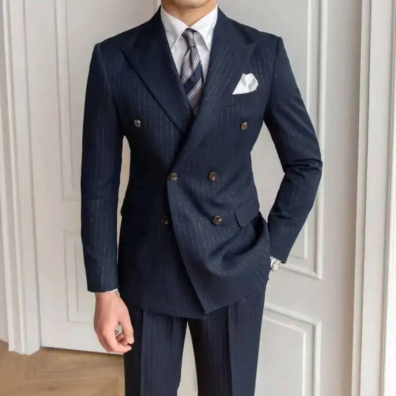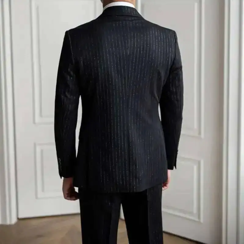 Metallic Stripe Business Formal Casual Double Breasted Dress Suit 2 Piece Wedding Suit For Men Office Work Party Prom Costume