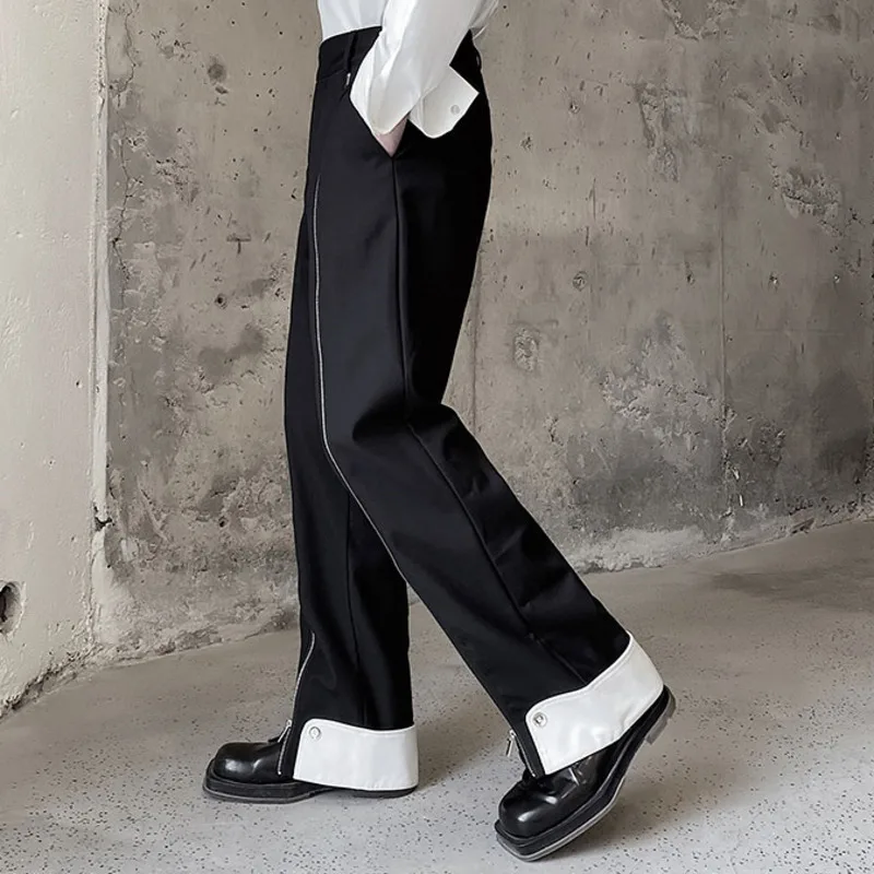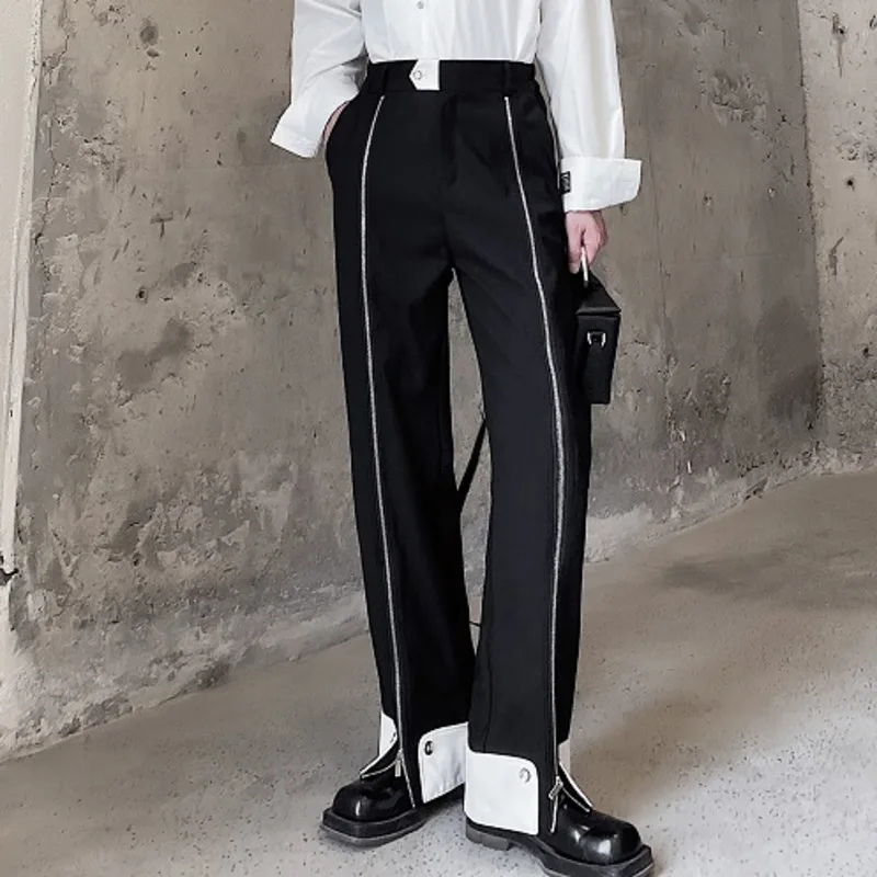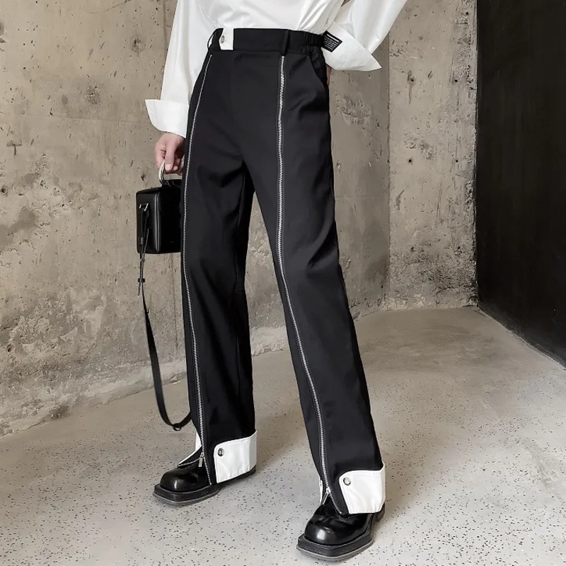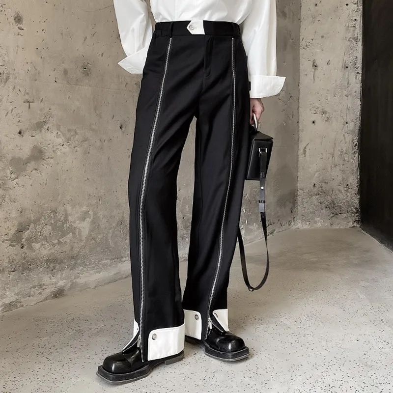 WVGA Autumn New Man High Street Personalized Zipper Color Contrast Design Trendy Niche Chic Casual Straight Suit Pants Ins W9287