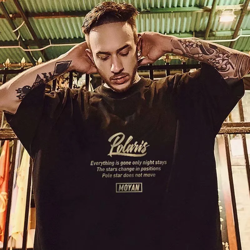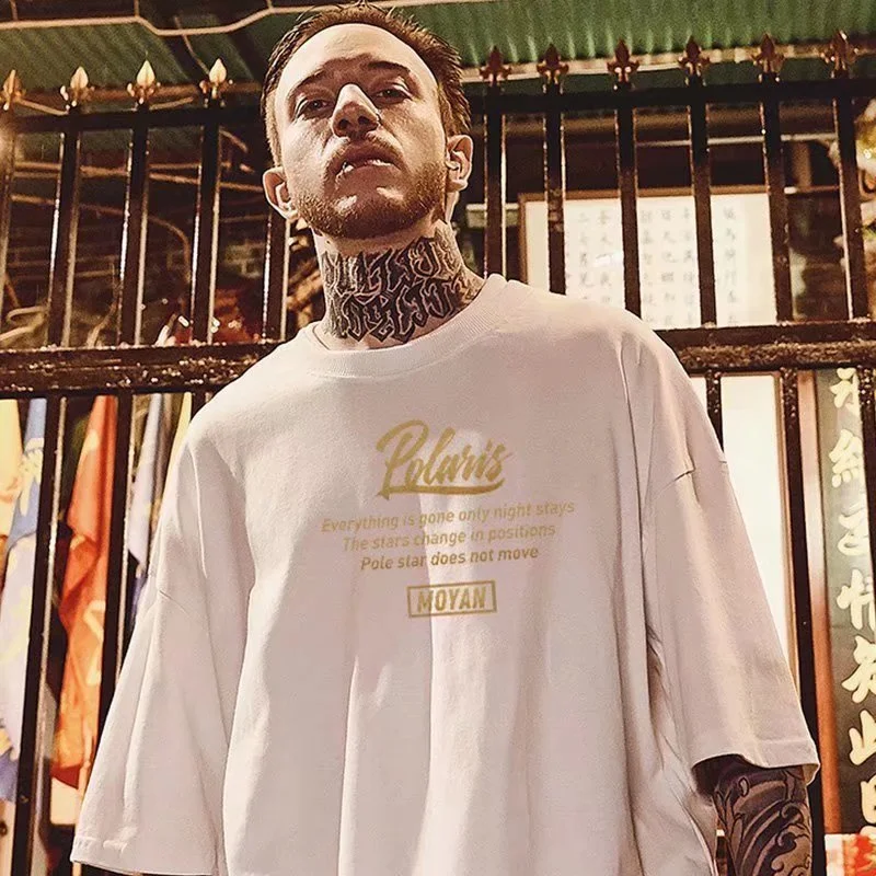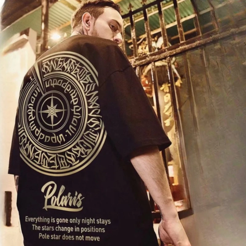 8XL Loose Fitting Fashionable Trendy New Eight pointed Star Formation Print T-shirt with Casual Men Versatile Couple Outfit