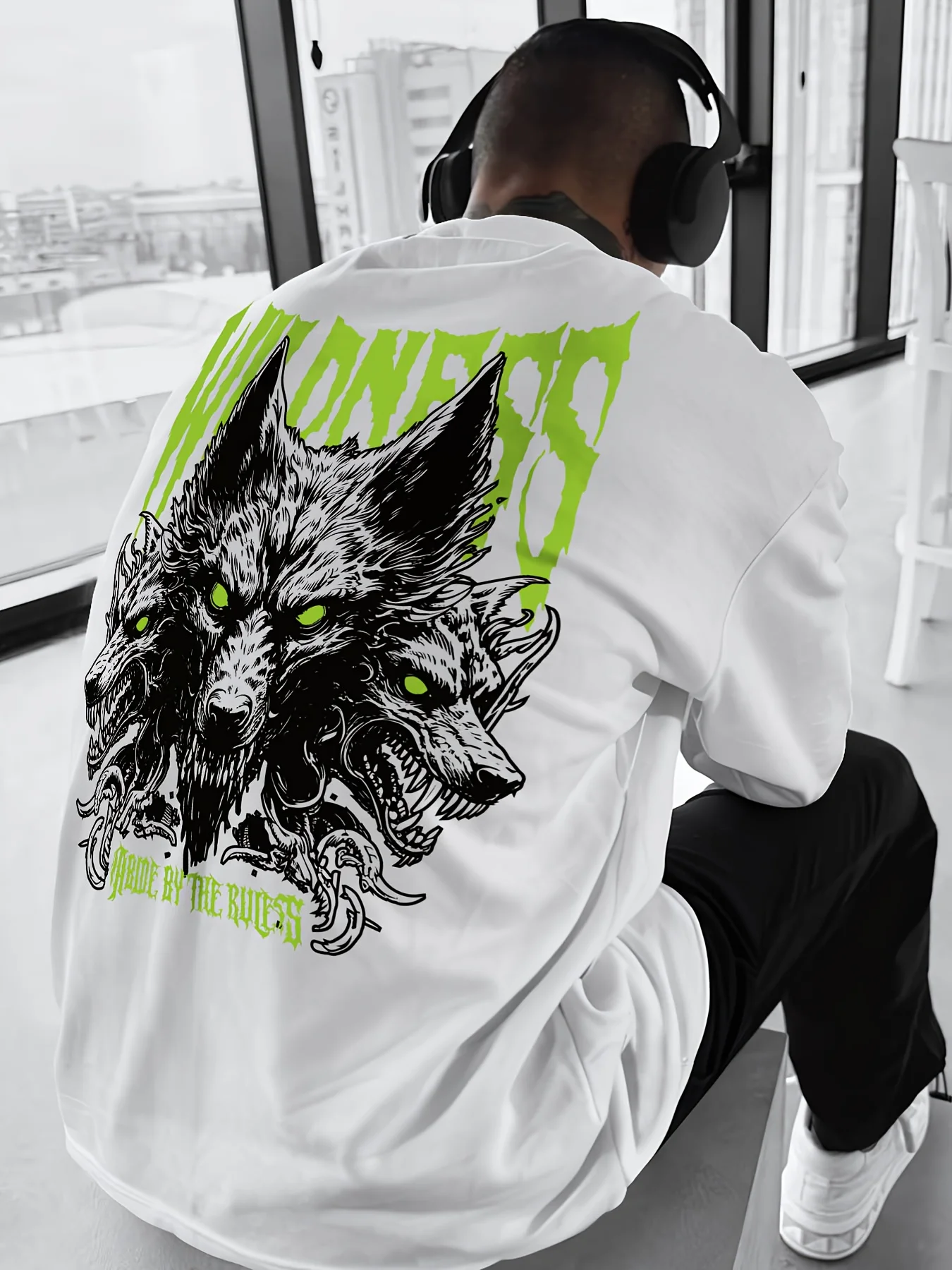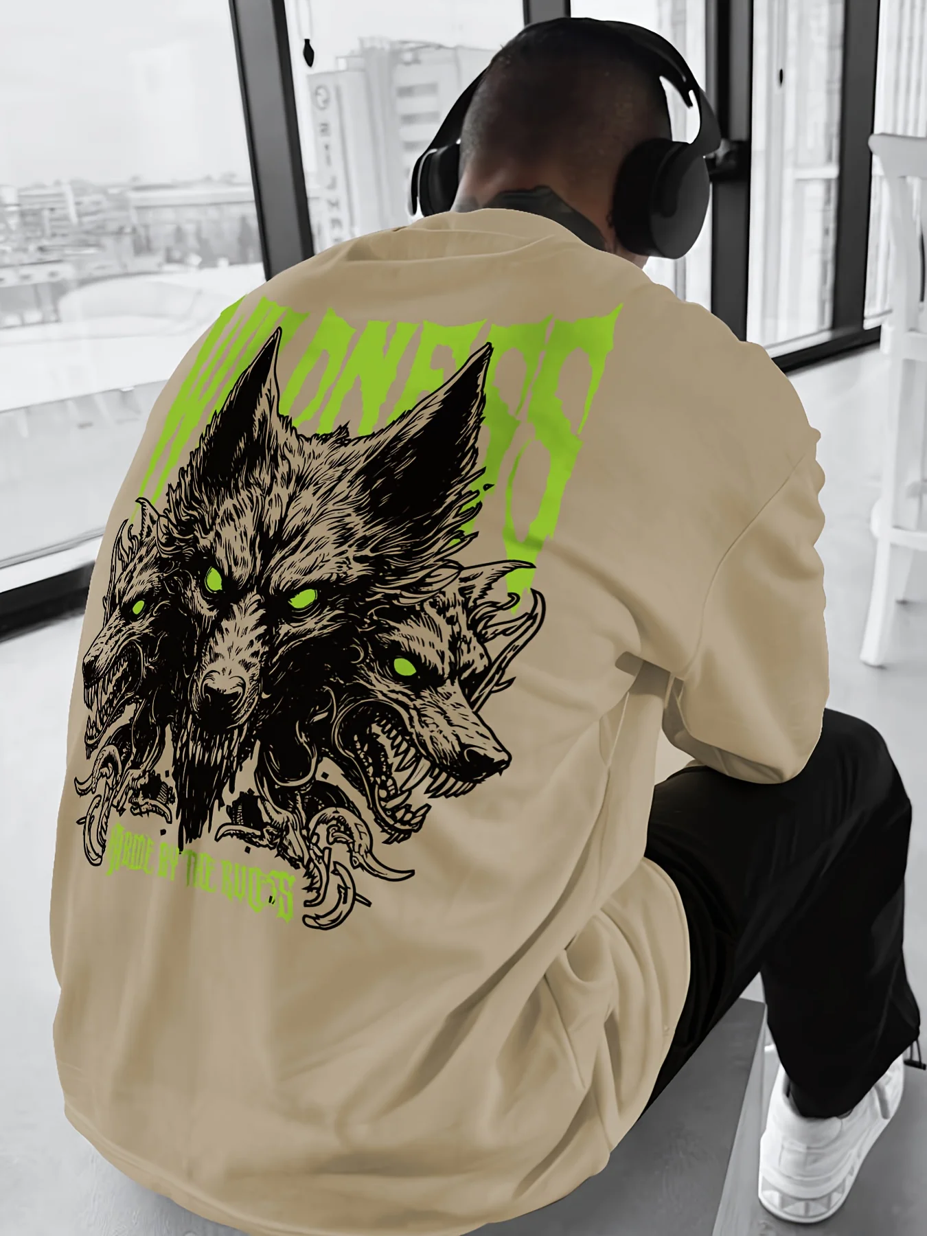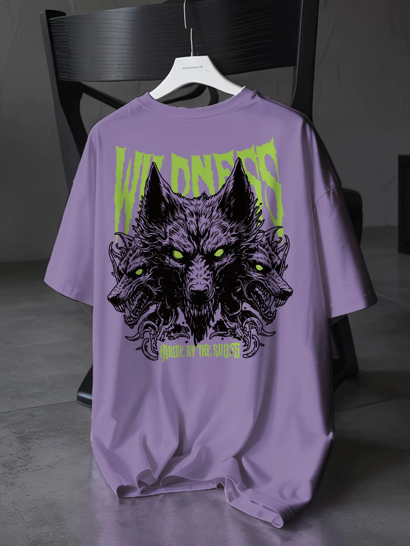 Hot selling European and American men's summer wolf print breathable and comfortable round neck T-shirt outdoor street style top