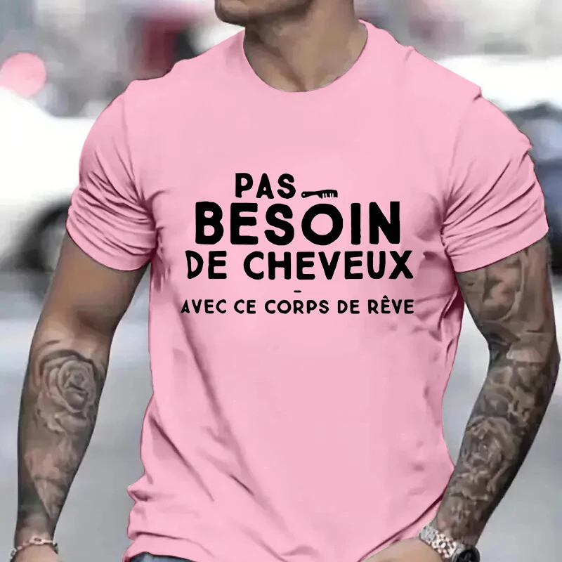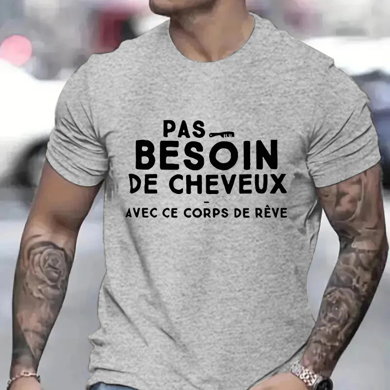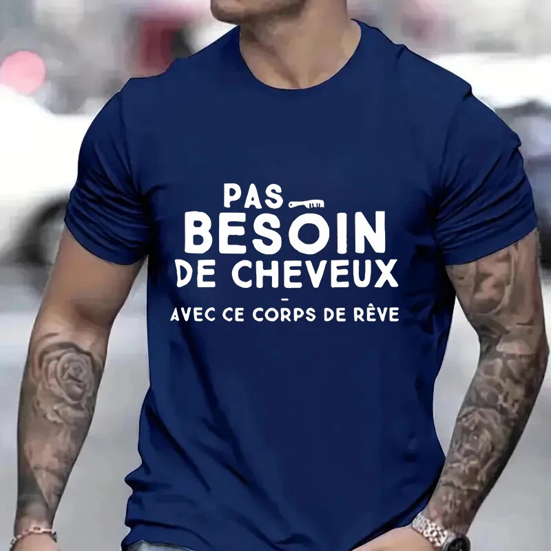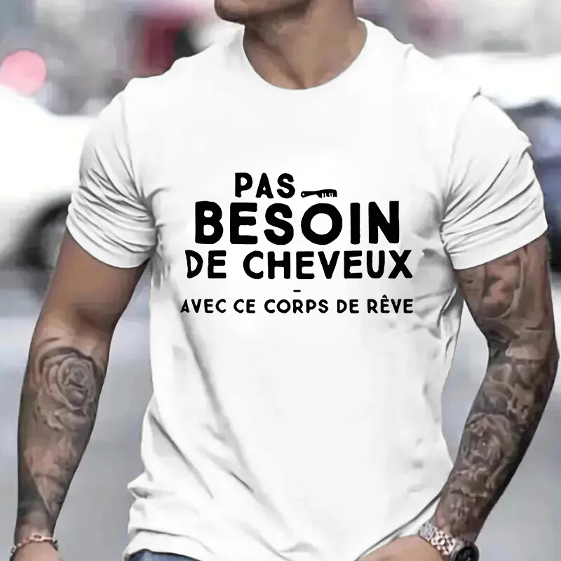 No Need for Hair with This Dream Body T Shirt for Men Funny French Humor Graphic Y2k Tops Father's Day Gift Summer Short Sleeve