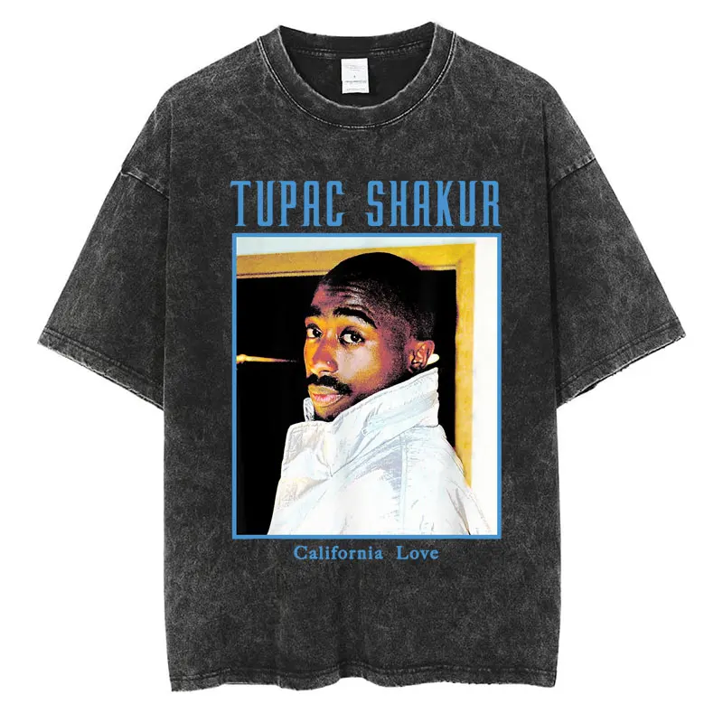 Rapper Tupac 2pac All Eyez on Me Washed T Shirts Hip Hop Vintage Fashion T-shirt Men's Oversized Cotton T Shirt Streetwear Gifts
