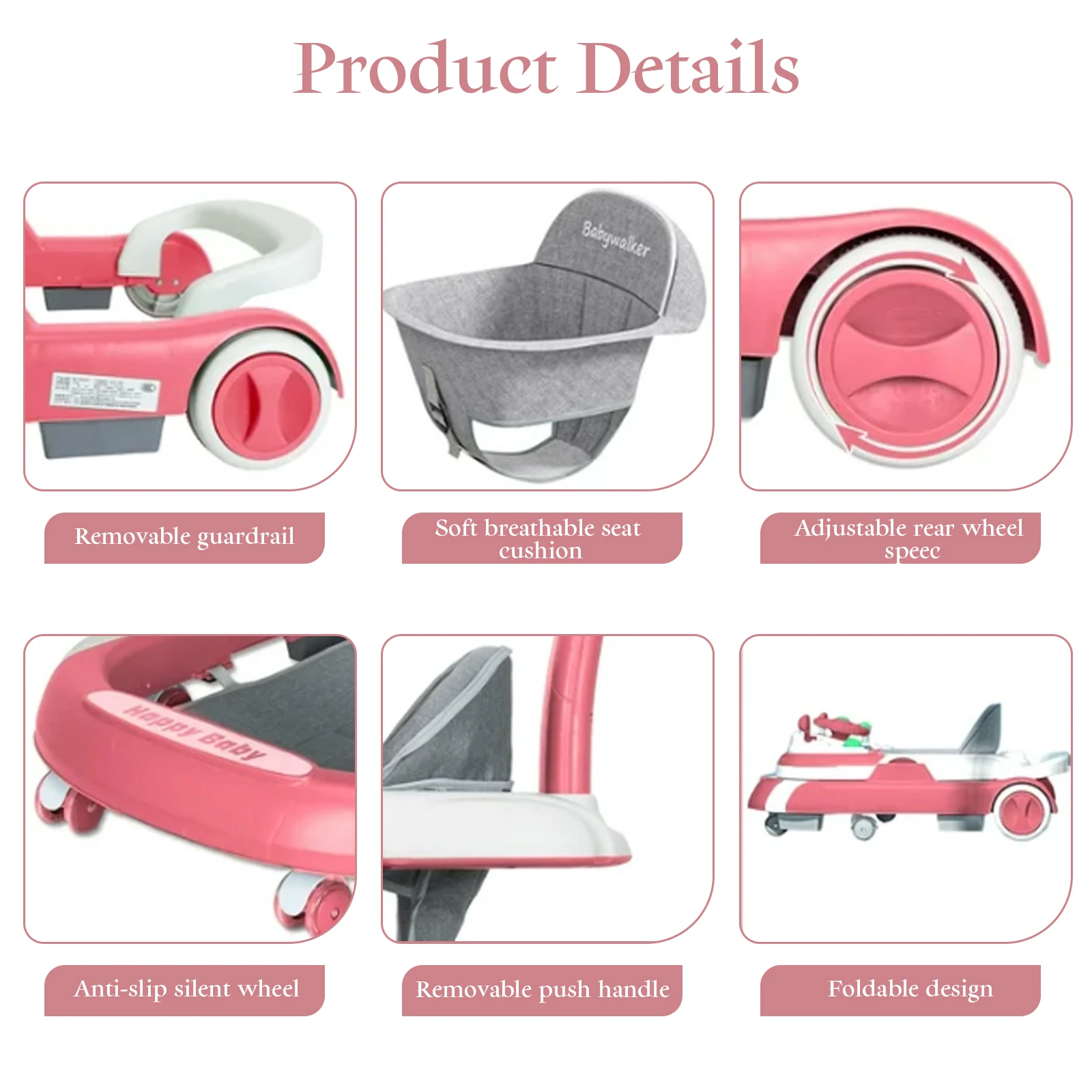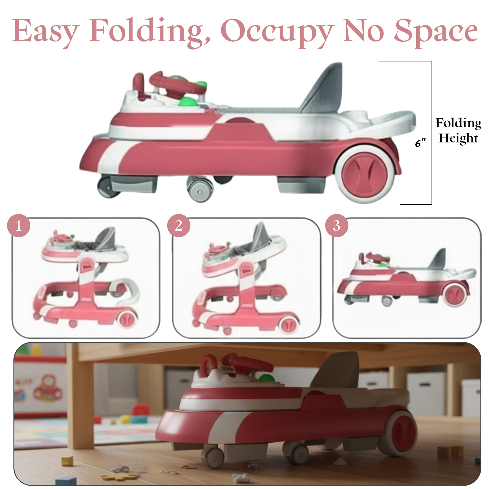 4 in 1 Baby Walker Toddler Baby Push Walker with Sunshade, Removable Feeding Tray and Music Tray Foldable Walker