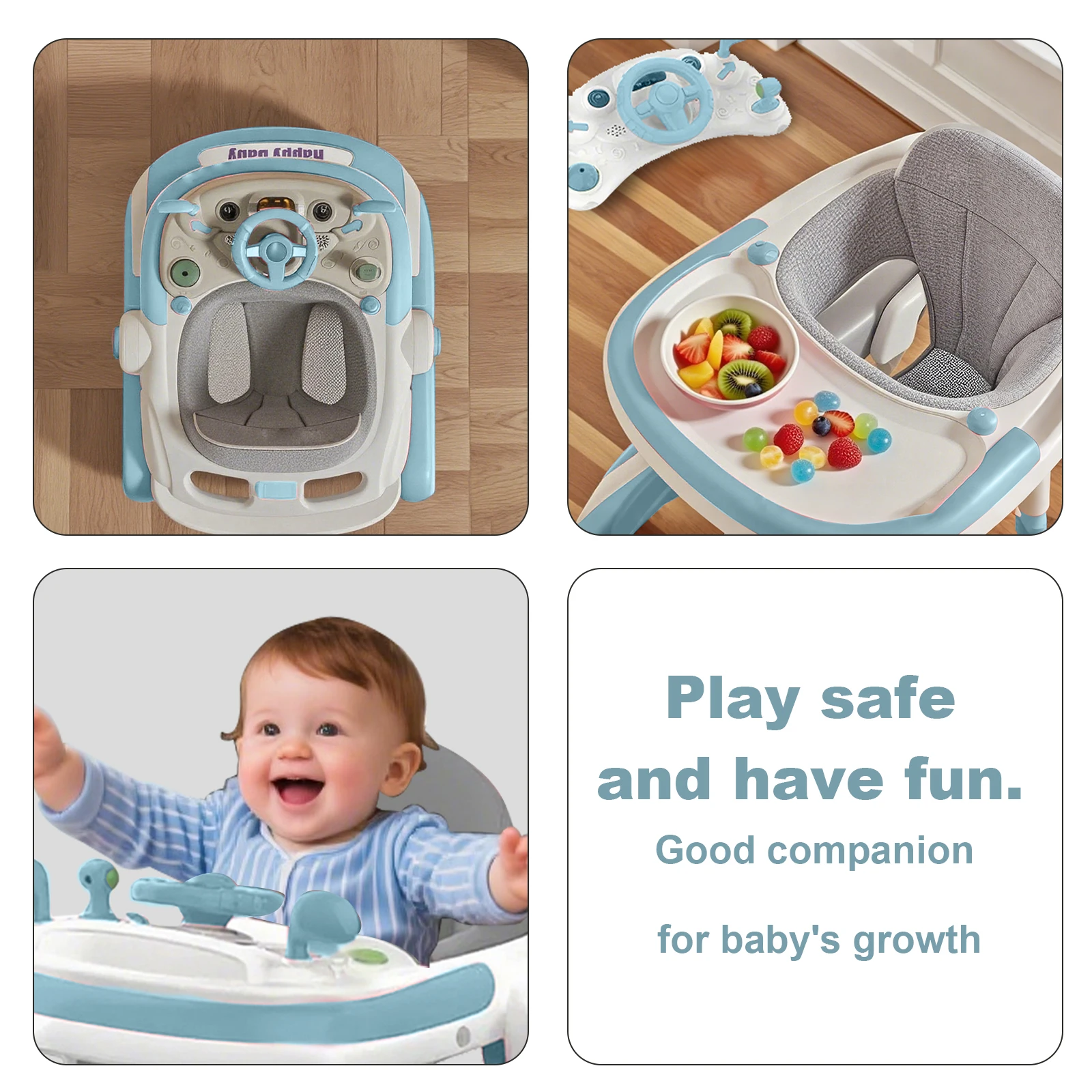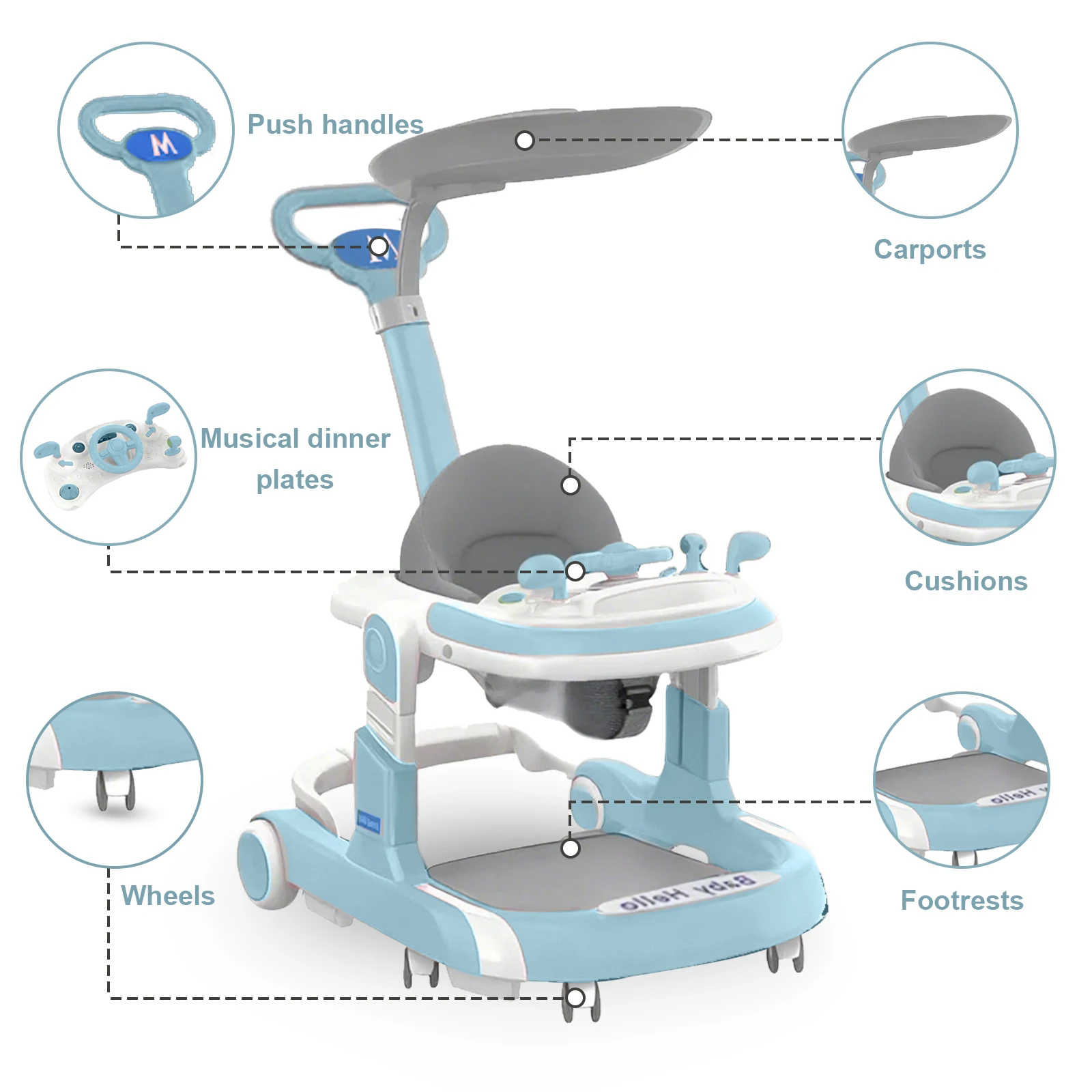 - 4 in 1 functions: walker, sunshade, feeding/music trays
