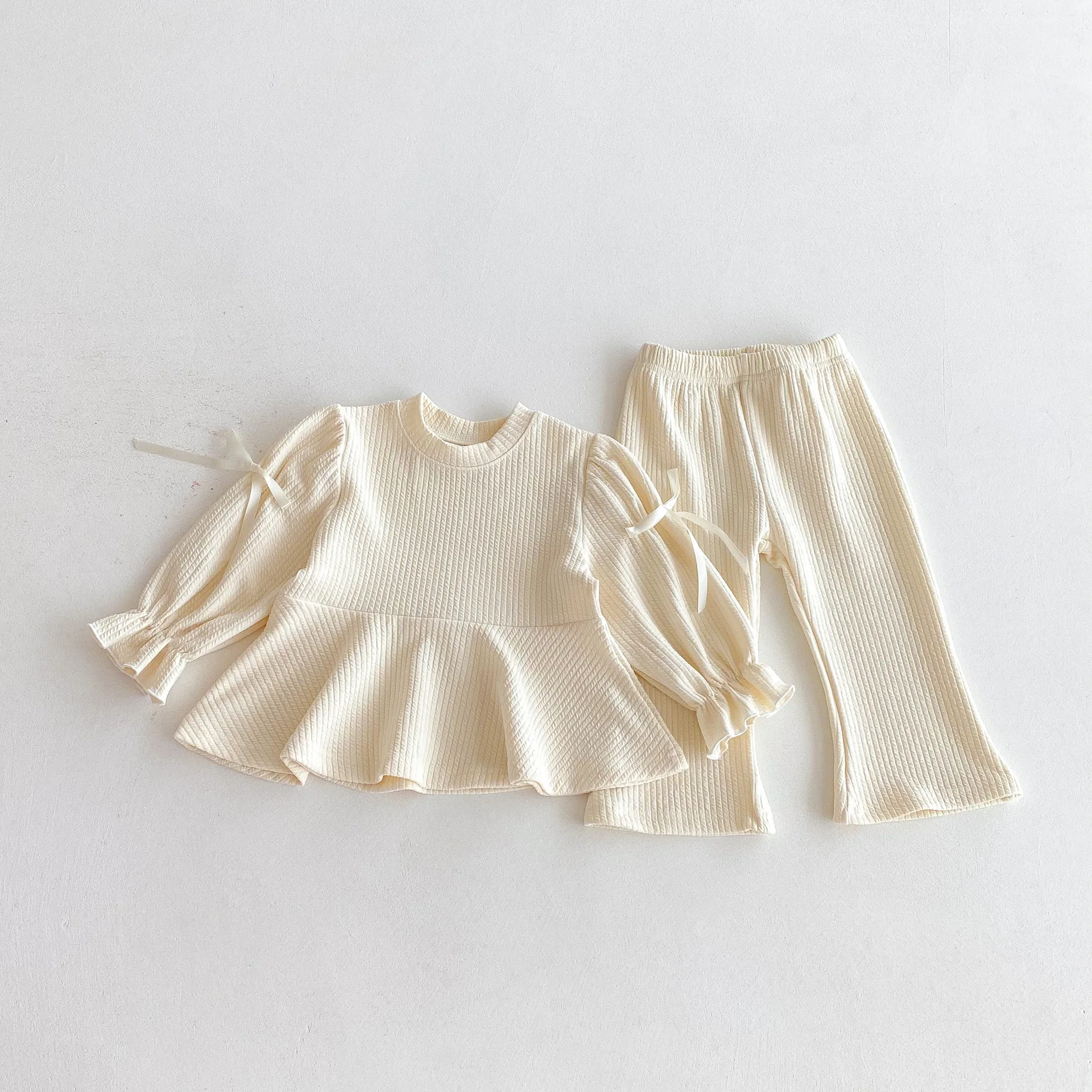 Autumn Korean Girls' Set Sweet and Cute Children's Top and Bottom Clothes Set Baby Girls' Bellbottom Pants Two Piece Set