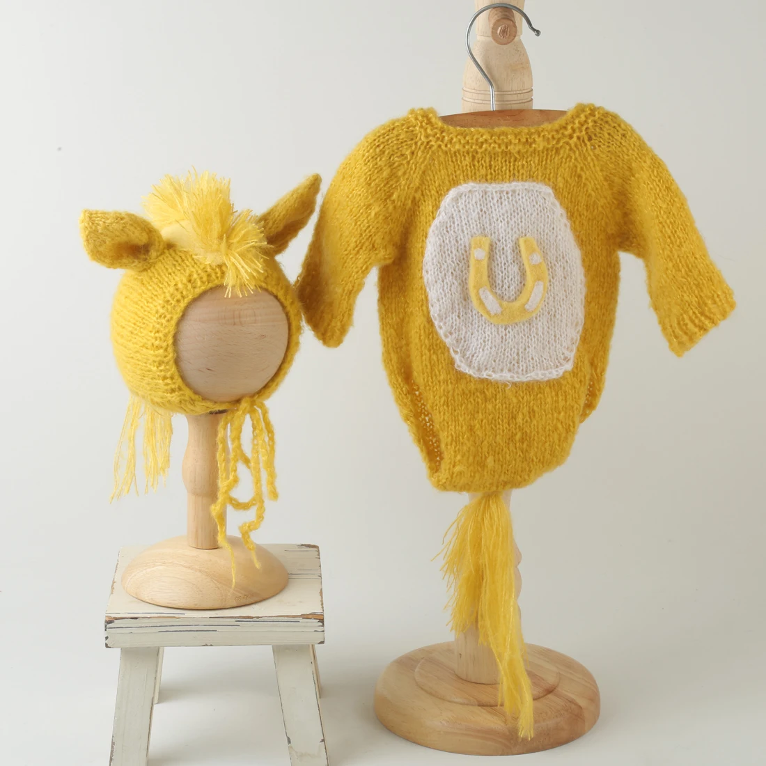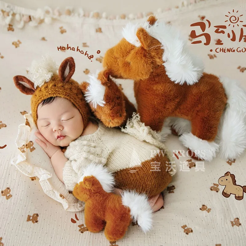 Newborn knitted Horse Jumpsuits Outfit Newborn Photography Props Crochet Baby Horse Romper And Toy Set