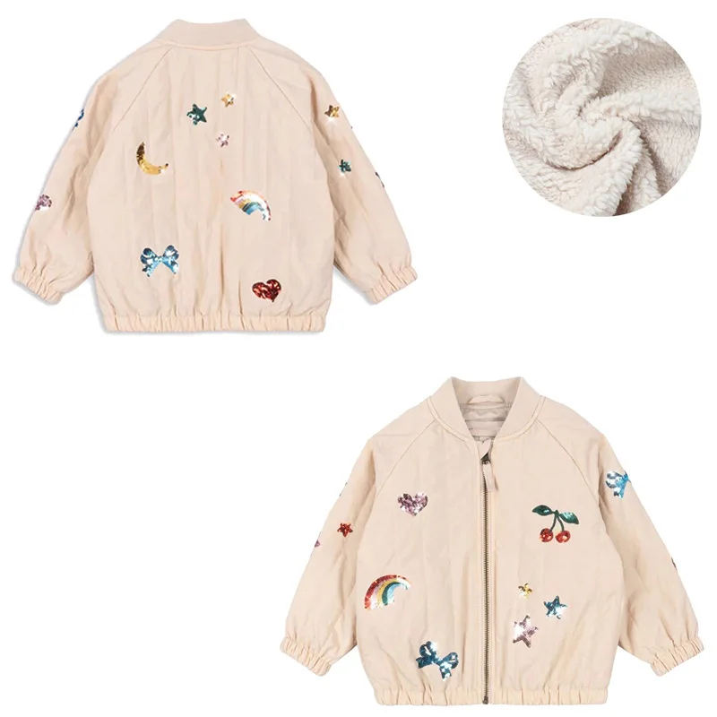 2025 Autumn Winter Ks Children's Thousand-Stitch Embroidered Sequin Thickened Fleece Jacket Flight Suit Cross-Border Outerwear