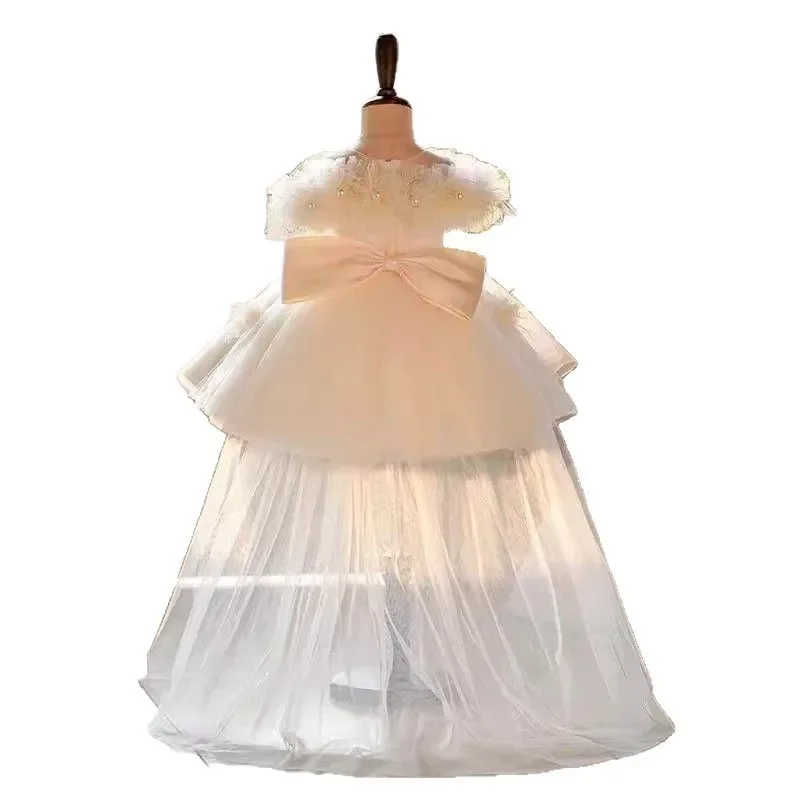 2025 off Shoulder Fairy Dress Trendy Kids Elegant Girls Party Outfit Clothes Vestido Performance Gown Host Princess Lace Dresses