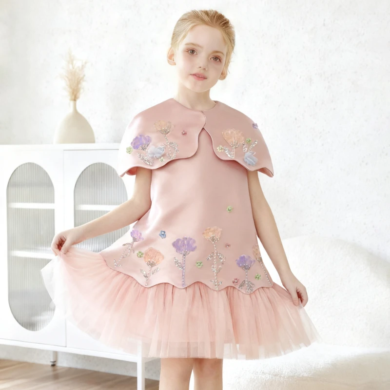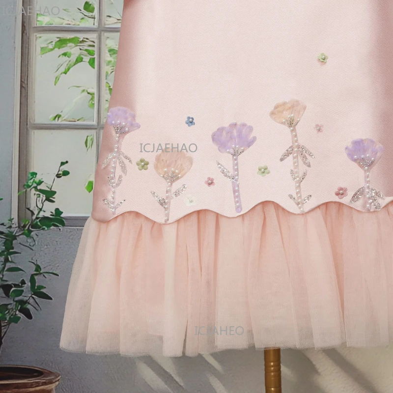 Baby Dresses for Eid 2026 Children Girls Dress Flowers Birthday Princess Gown Cake Skirt Formal Party Kids Costumes Girl Clothes