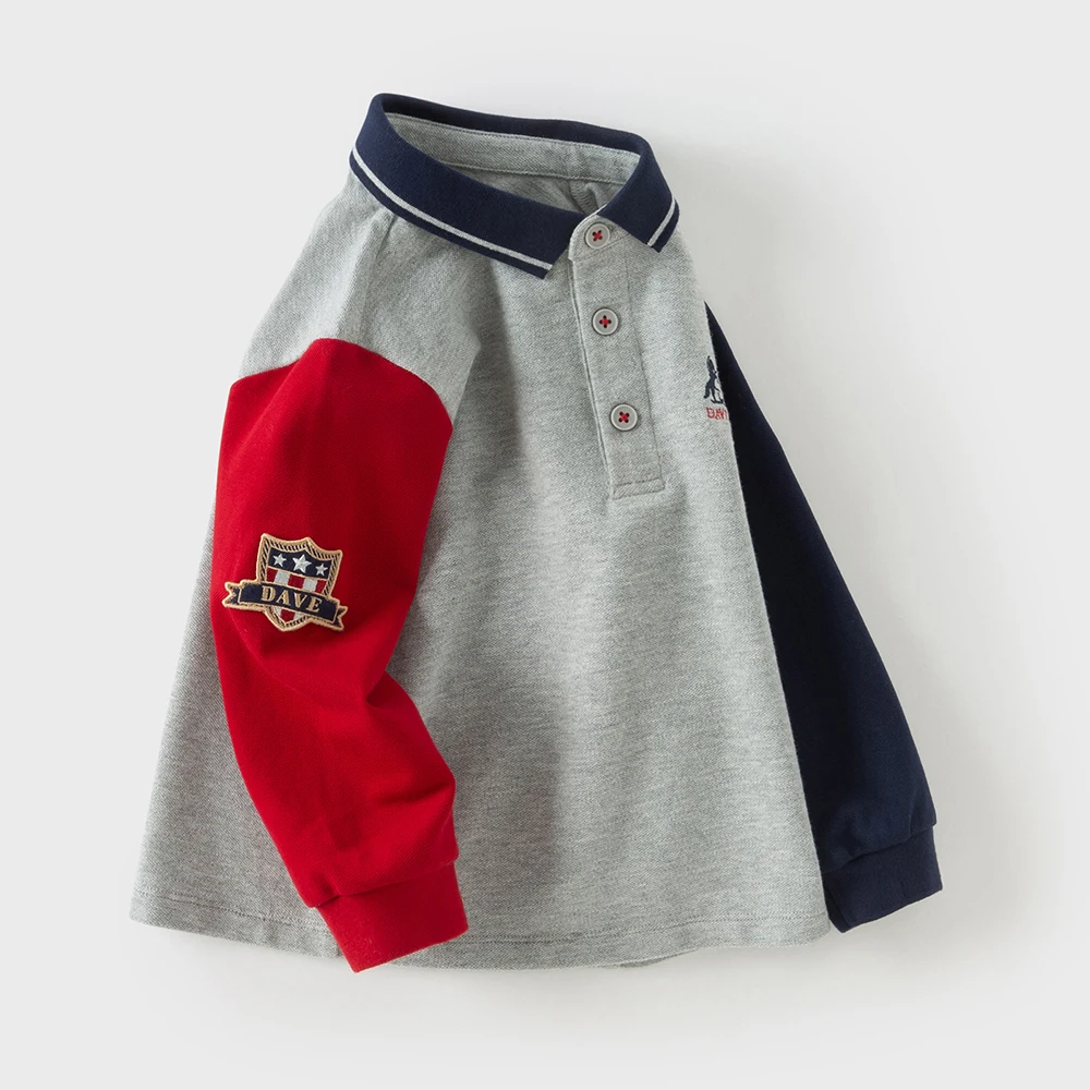Dave Bella Boys' Spring Autumn Polo T-shirt Casual Long Sleeve Cotton T-shirt Kids Boy Outdoor Polo Shirt Top DB3253487