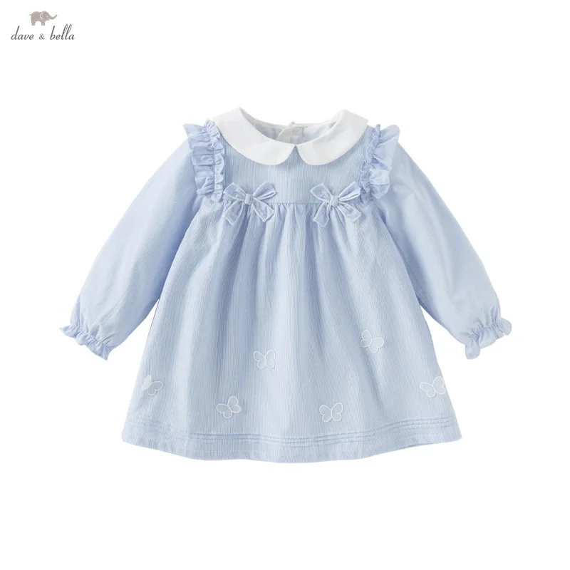 Dave Bella Children's Dress 2025 Spring New Gentle Sweet Cute Girls Baby Cotton Princess Dress Elegant Party Butterfly DB1250572