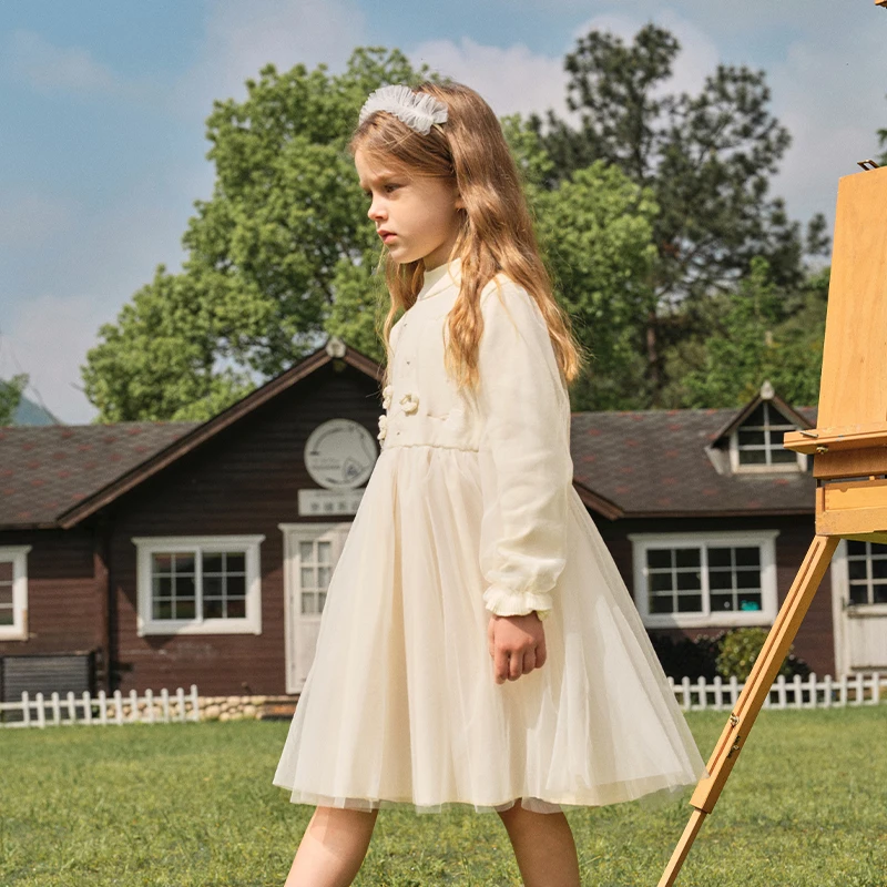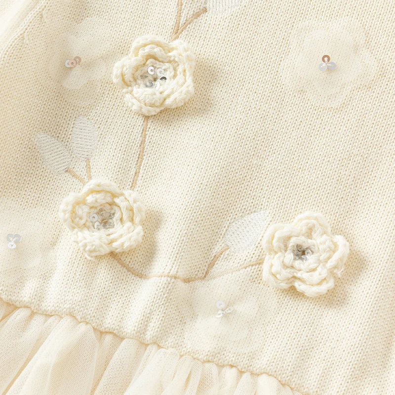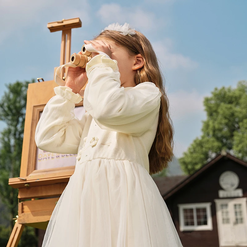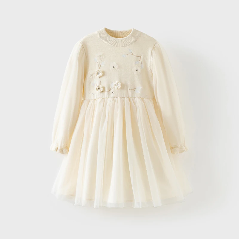 Dave Bella Girl Long Sleeve Princess Mesh Dress Children Winter Knitted Sweater Dress Sweet Party Outdoor Clothes DK3242196