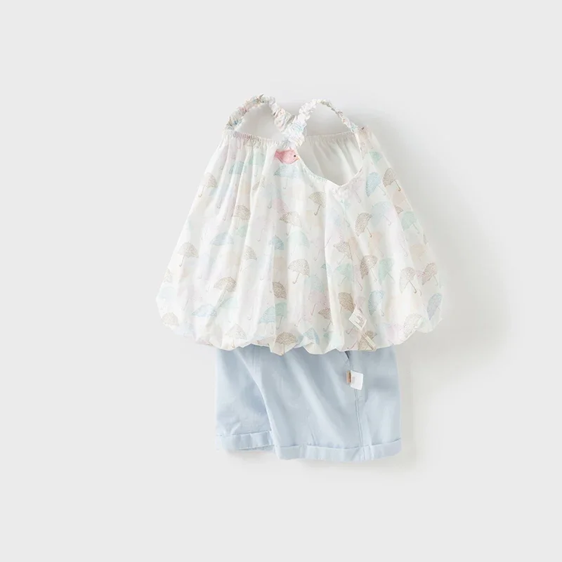 Dave Bella Girls' Shorts Set Gentle Sweet Cute Baby Shirt Top Two-Piece Set Summer Children's Thin Clothing Party DB2251783