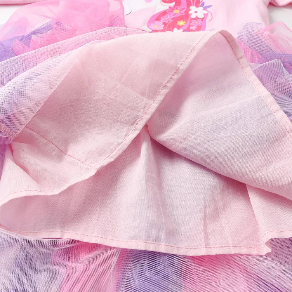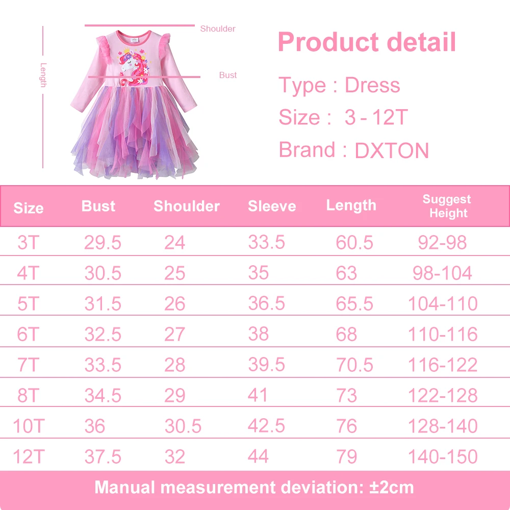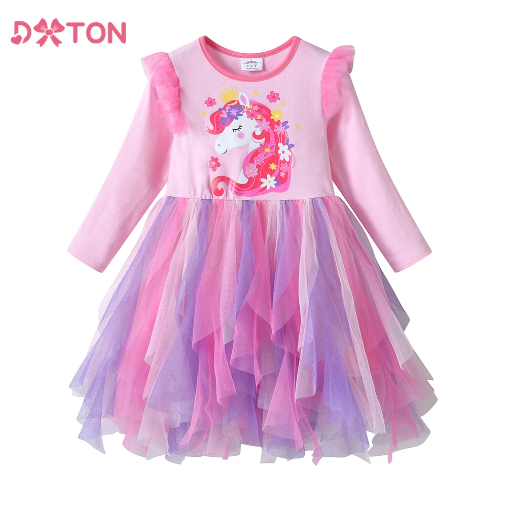 DXTON New Princess Dress Autumn Girls Long-sleeved Dress Irregular Mesh Kids Dresses Unicorn Floral Children's Party Clothing