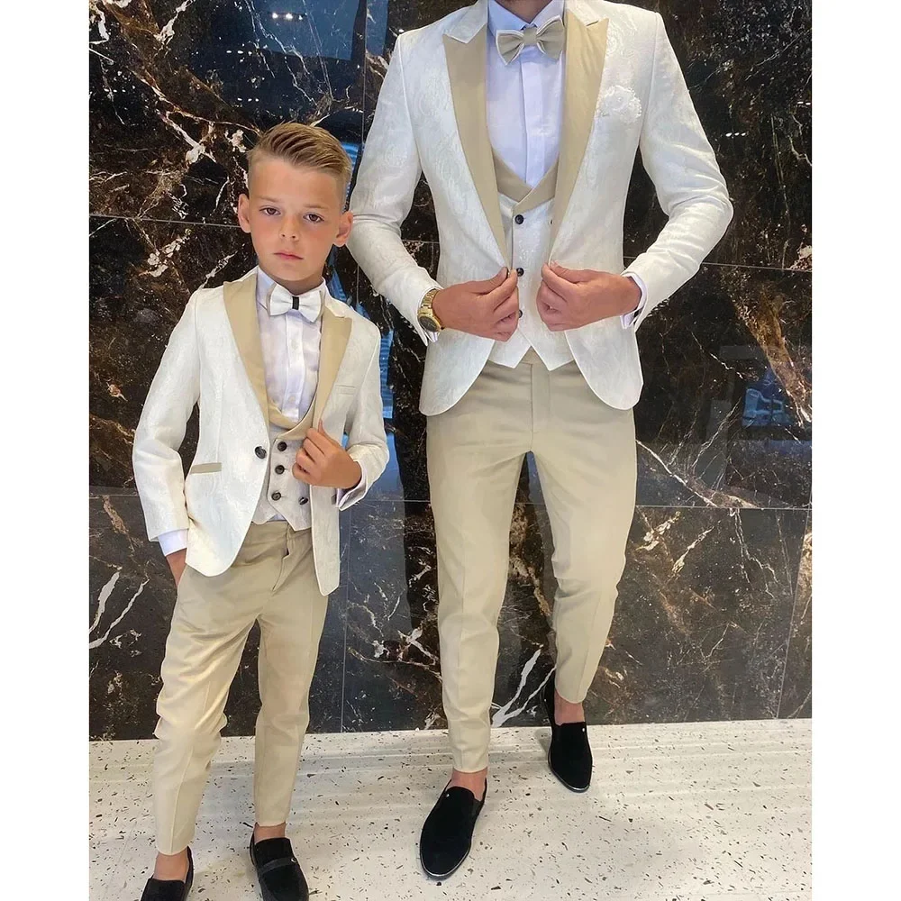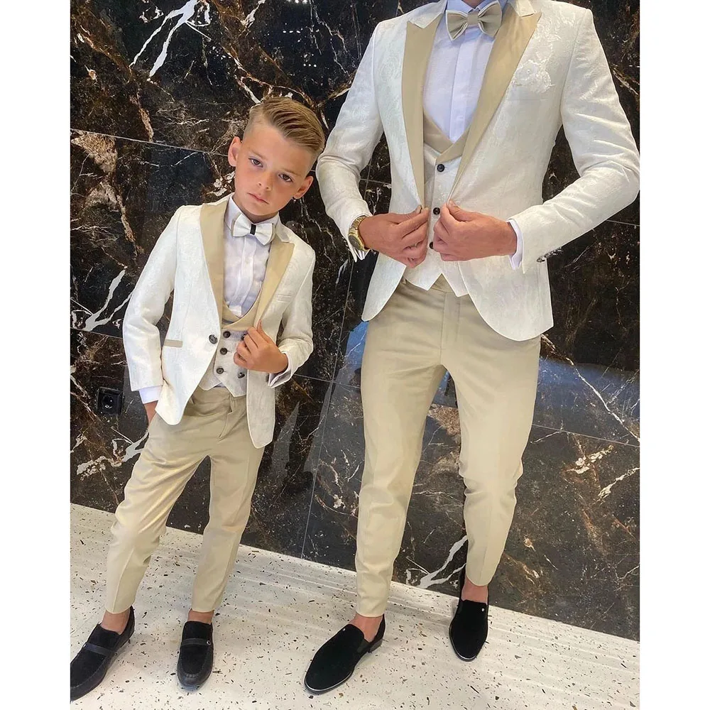 Father and Son Suits for Wedding Prom Groom Tuxedo Floral Men Slim Fit Kids Suit 3 Pcs Jacket Pants Vest Family Matching Outfits