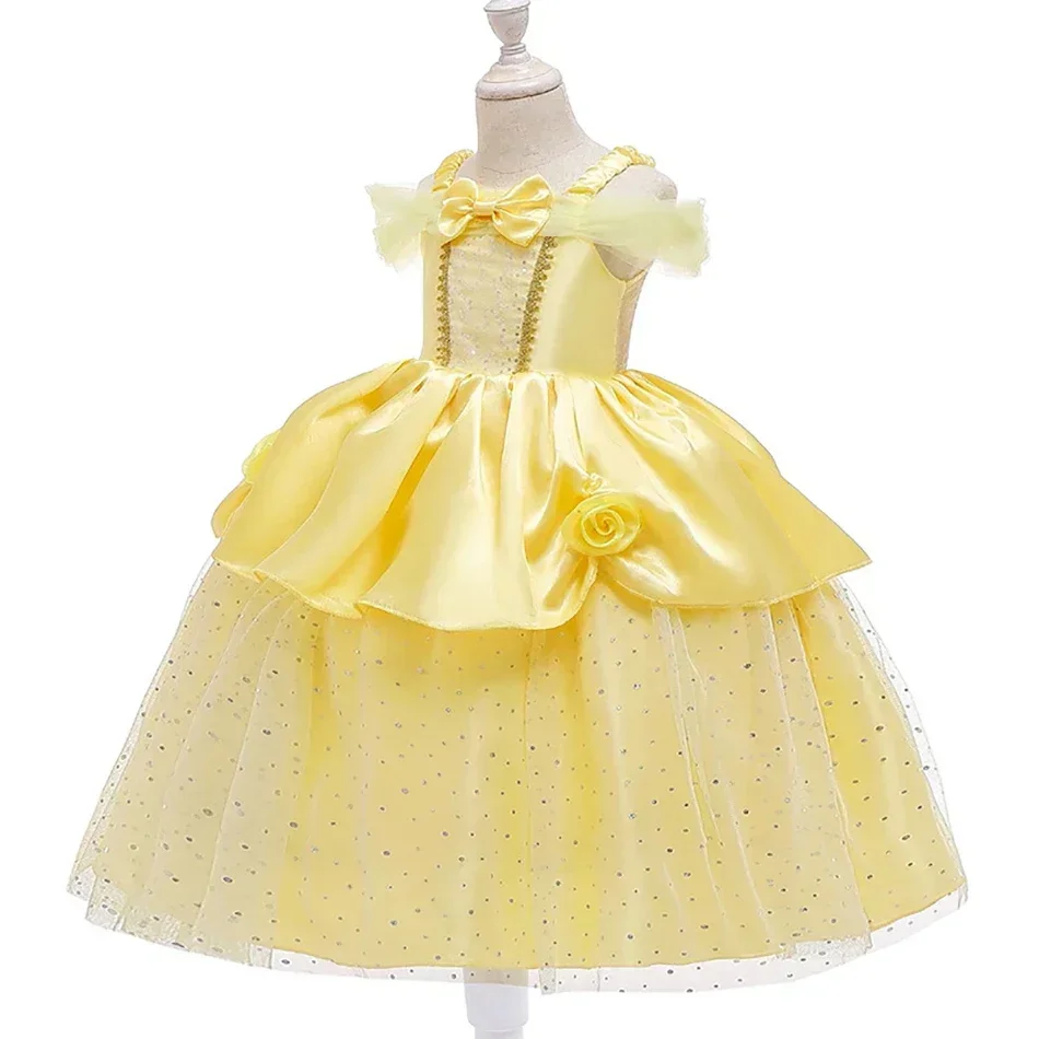 Girls Belle Cosplay Costumes Girls Dresses for Beauty Kids Party Clothing Magic Stick Crown Children Yellow Dress and The Beast