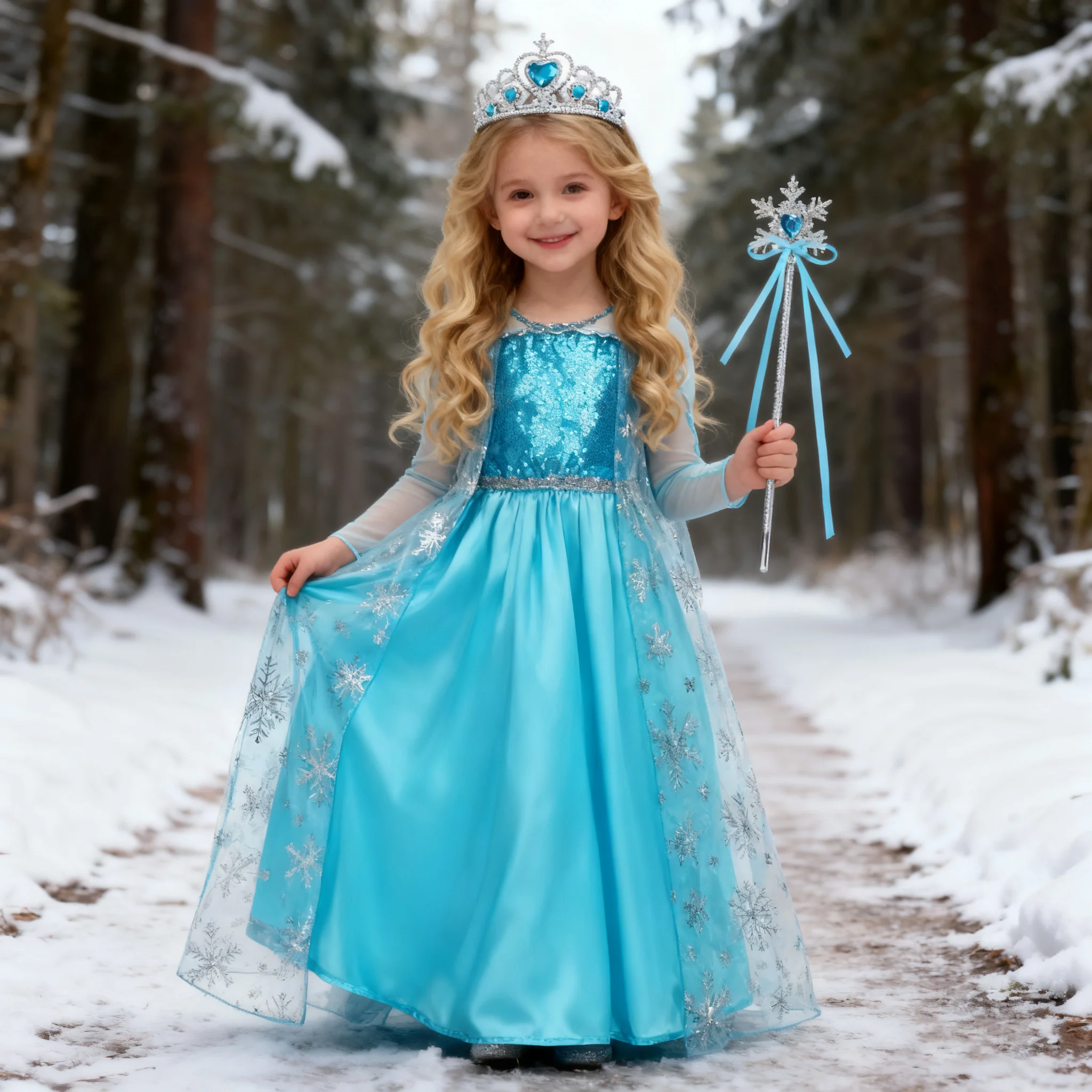Girls Cosplay Snow Queen Elsa Snowflake Cape Costumes Kids Carnival Party Prom Gown Children Clothes Elsa Princess Dresses