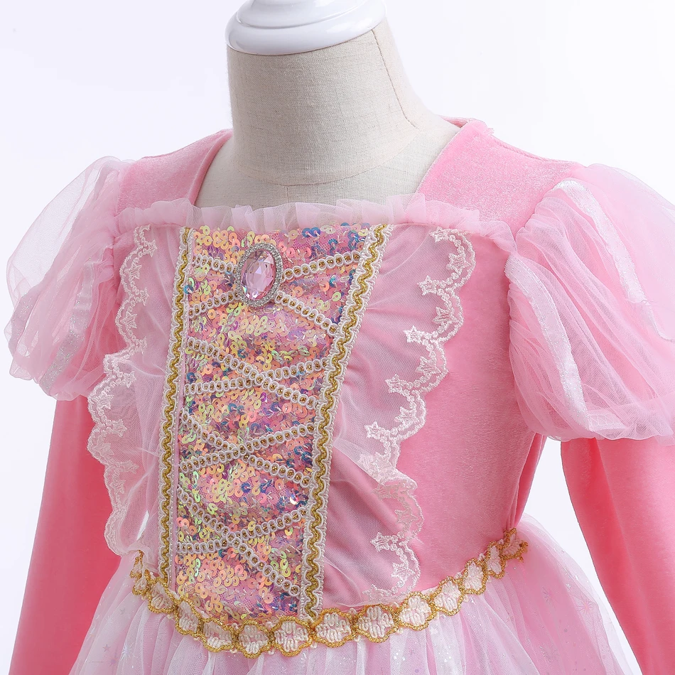 Girls Princess Pink Dress Children Rapunzel Pink Clothing Girls Spring Autumn and Winter Velvet Dress Kids Stage Performs Clothe