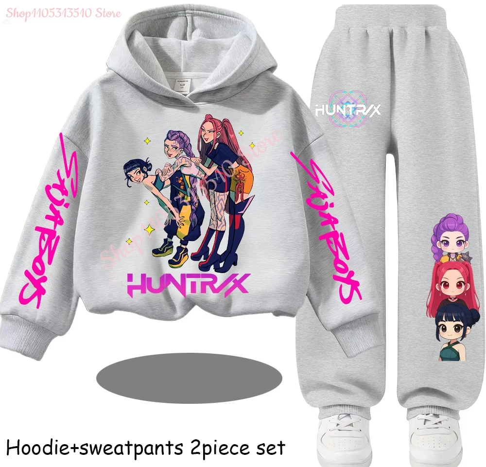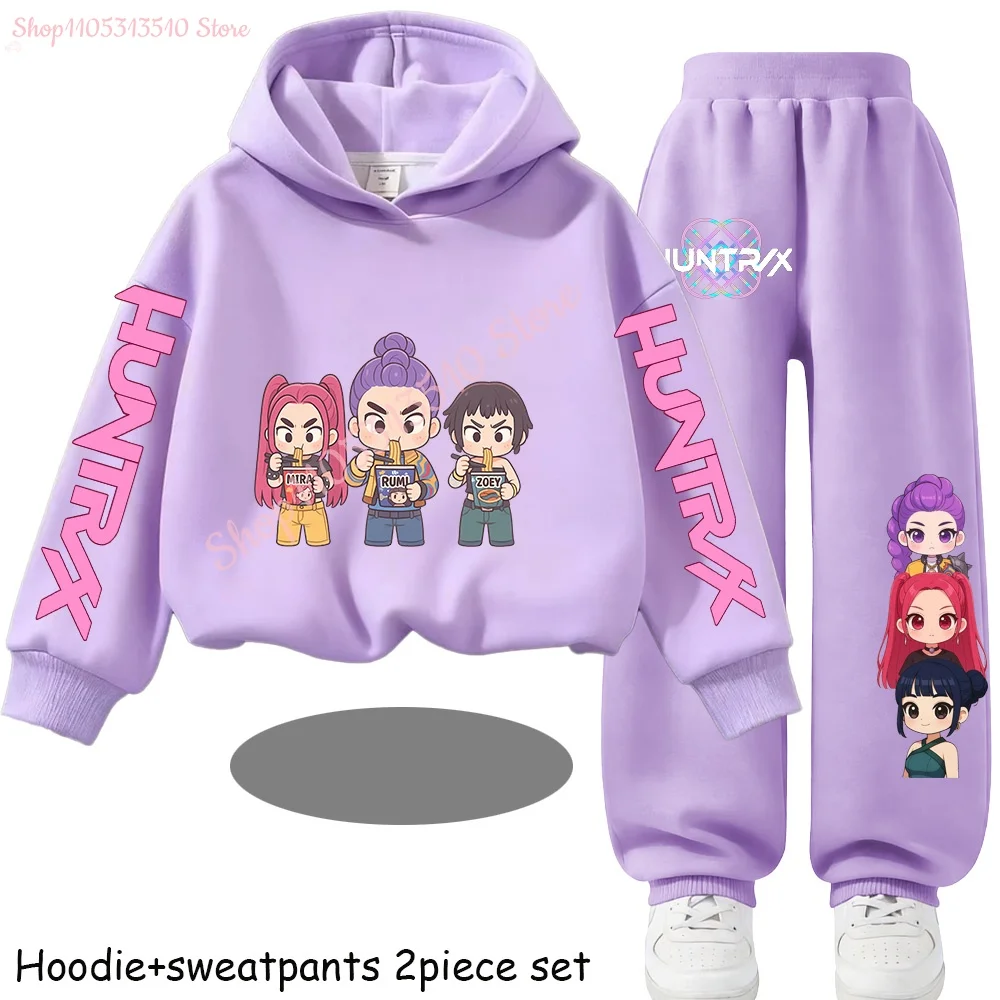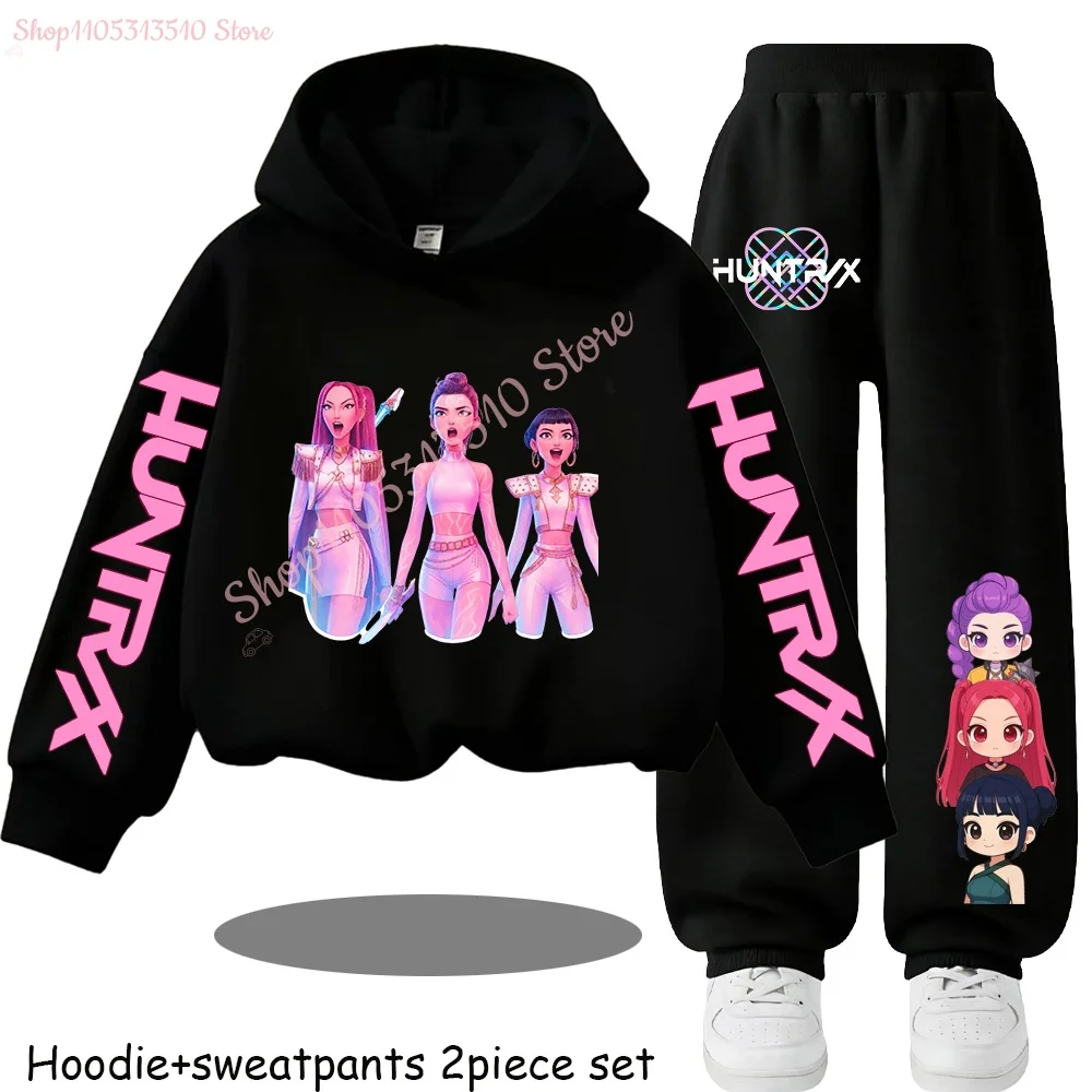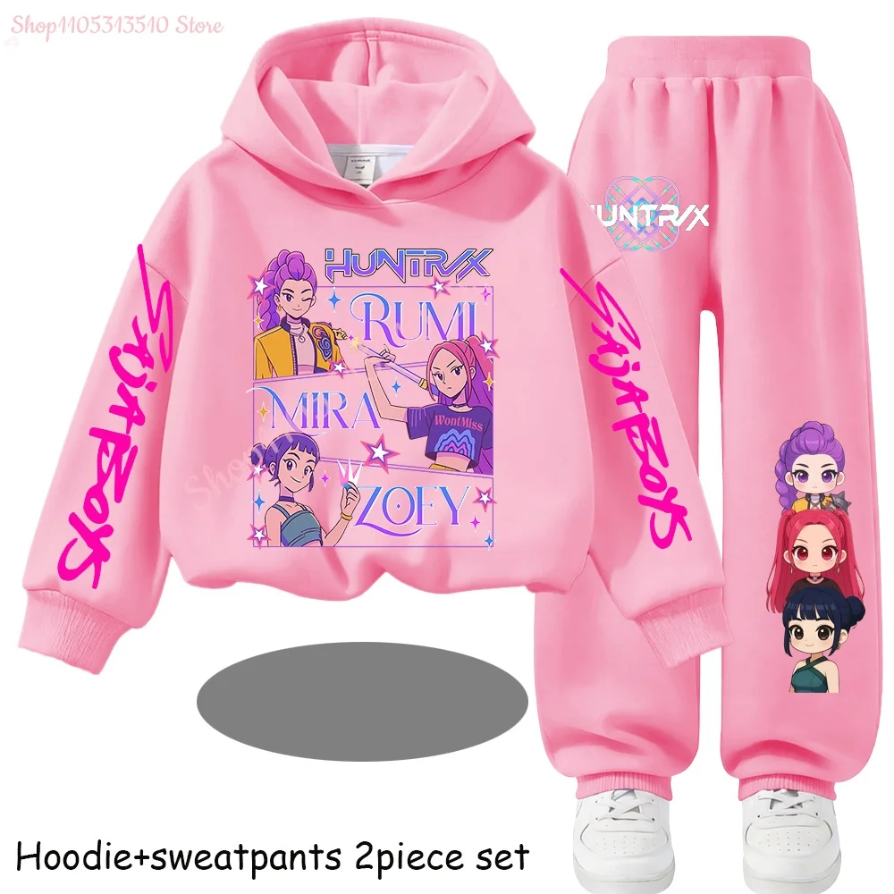 Hot 2026 Children HoodiesUnisex Set Kpop Demon Hunters Kawaii Pullover Sweatshirt Anime Trucksuit Cartoon Girls Boy Kids Clothes