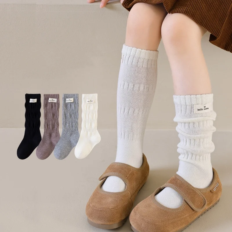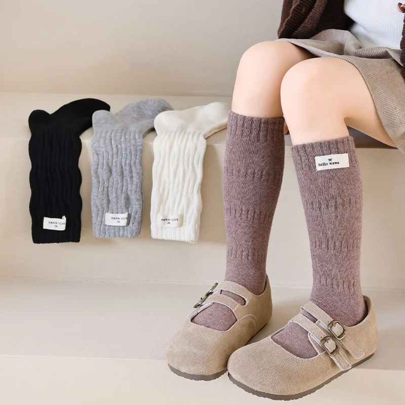 Kids Long Socks For Girls Spring Autumn New Cotton Children's Calf Socks Retro Solid Knee High Baby Child Girl Socks 1-12Years