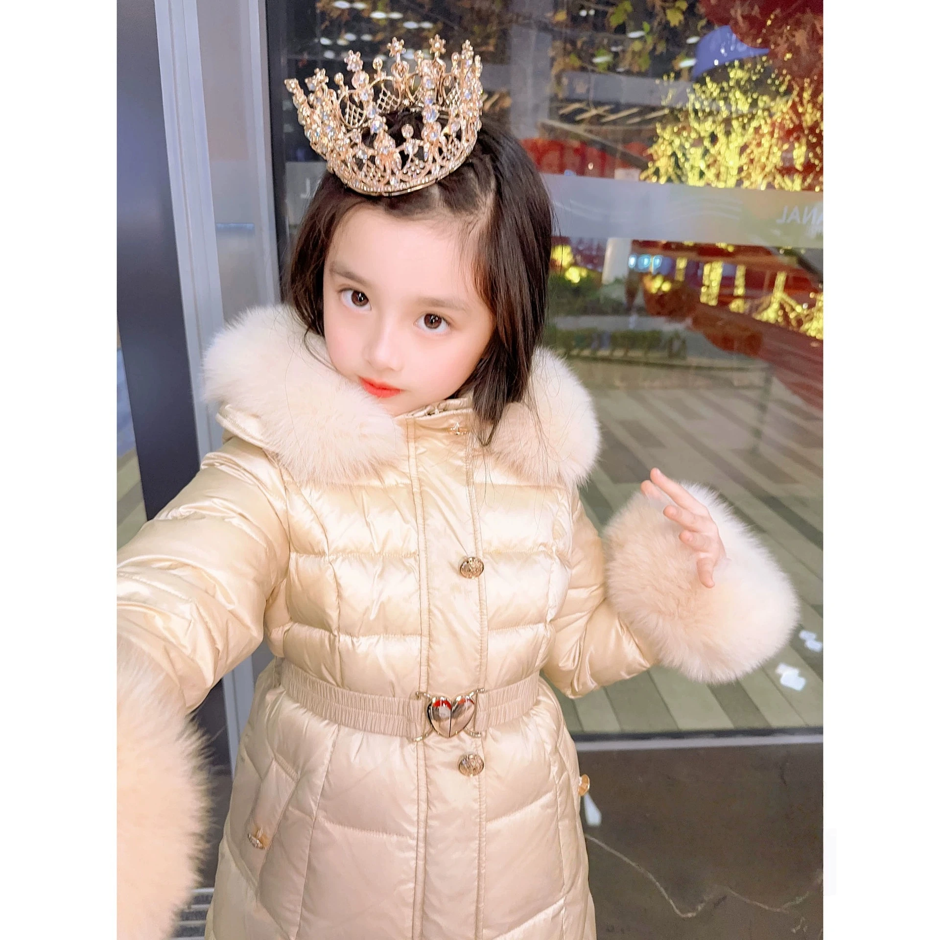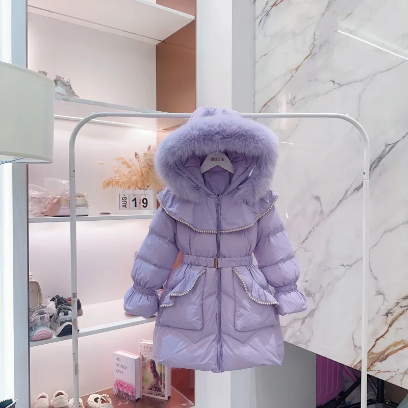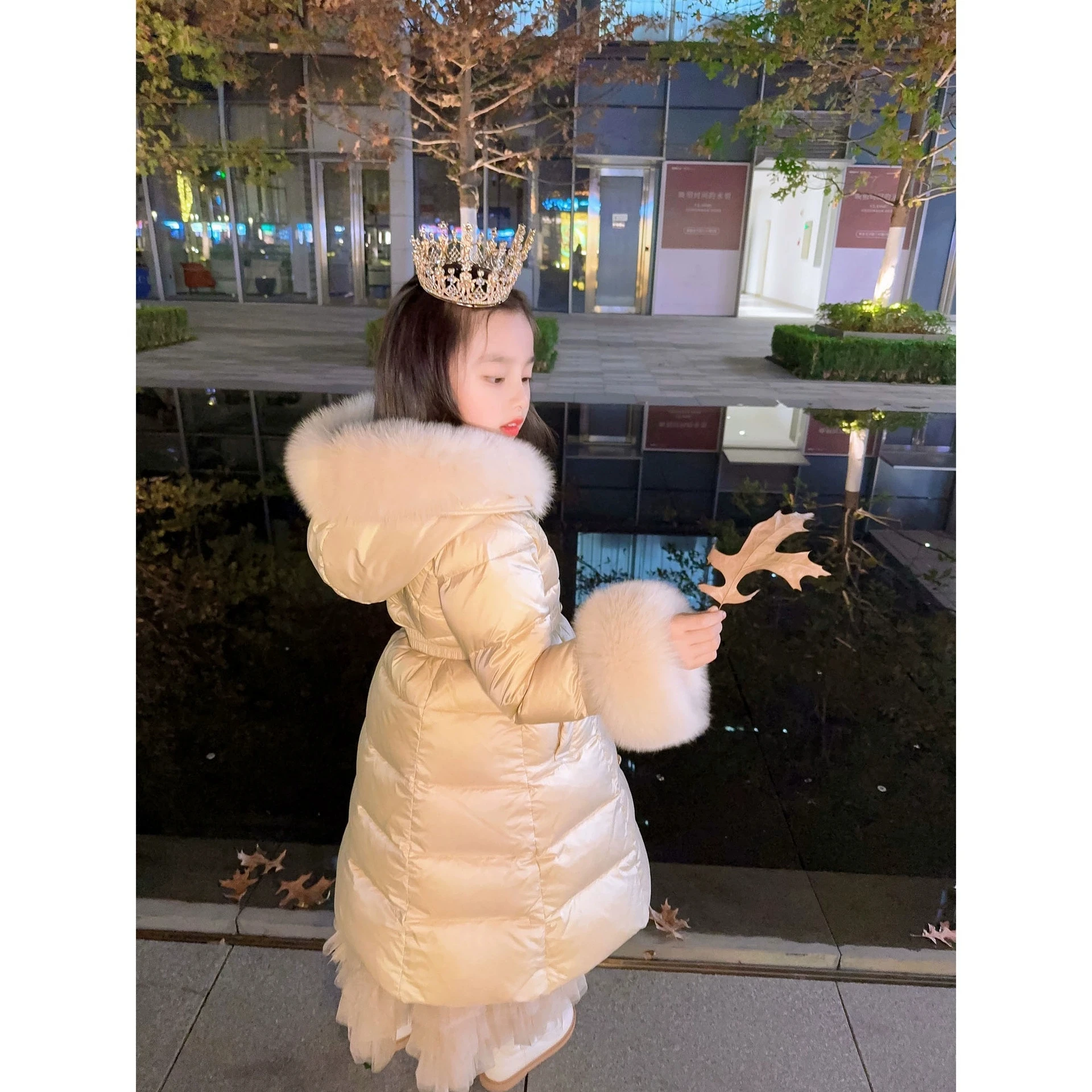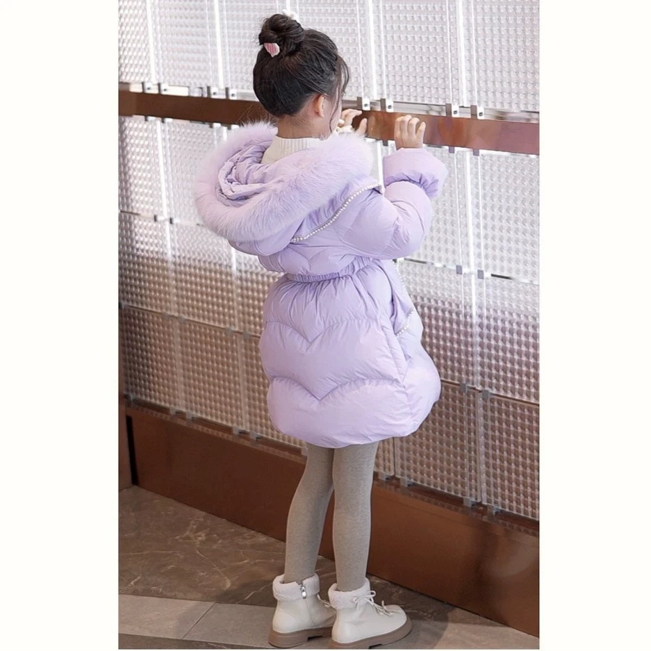 Long Girls' Padded Coat Fur Hooded Sleeve Fashionable Children's Coat Autumn Winter Teenage Slim Girls' Kids Clothing RM89