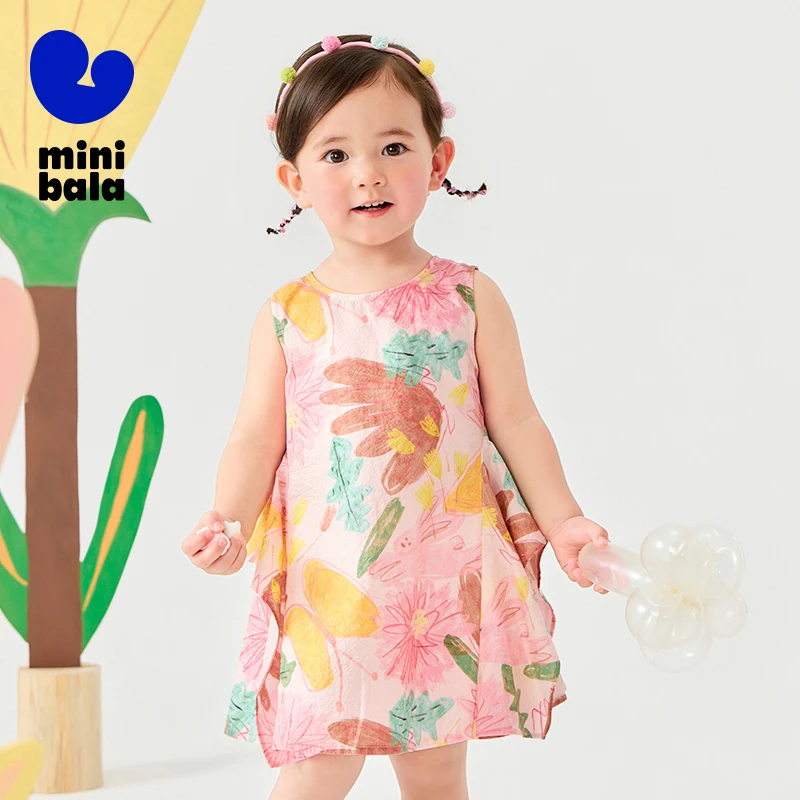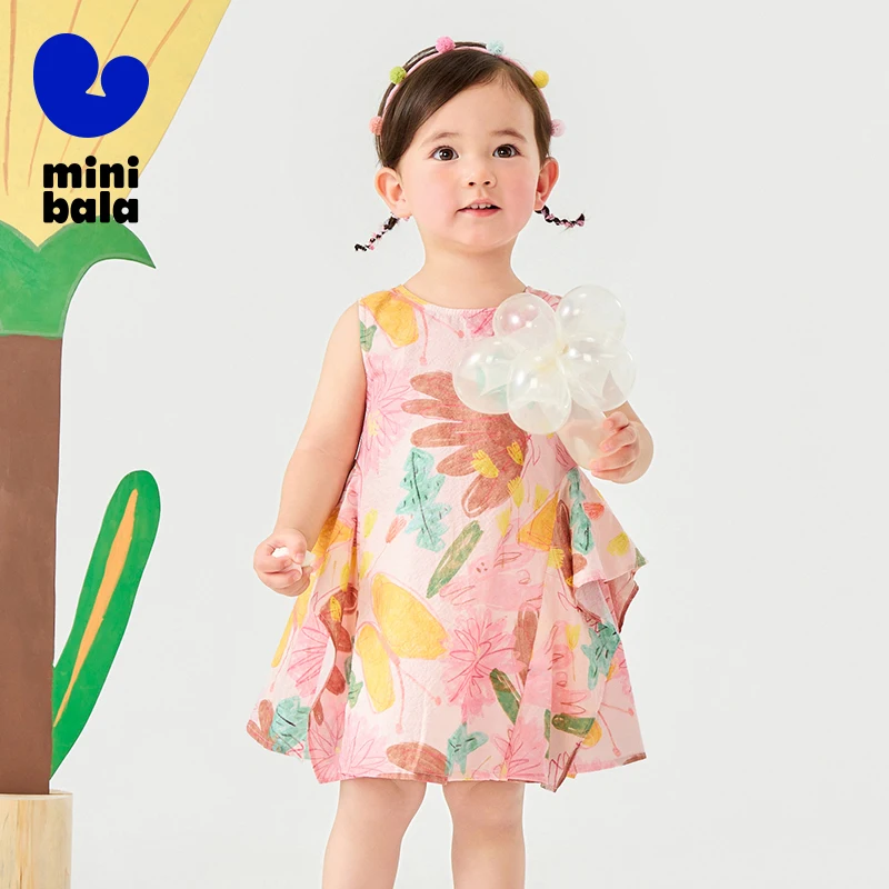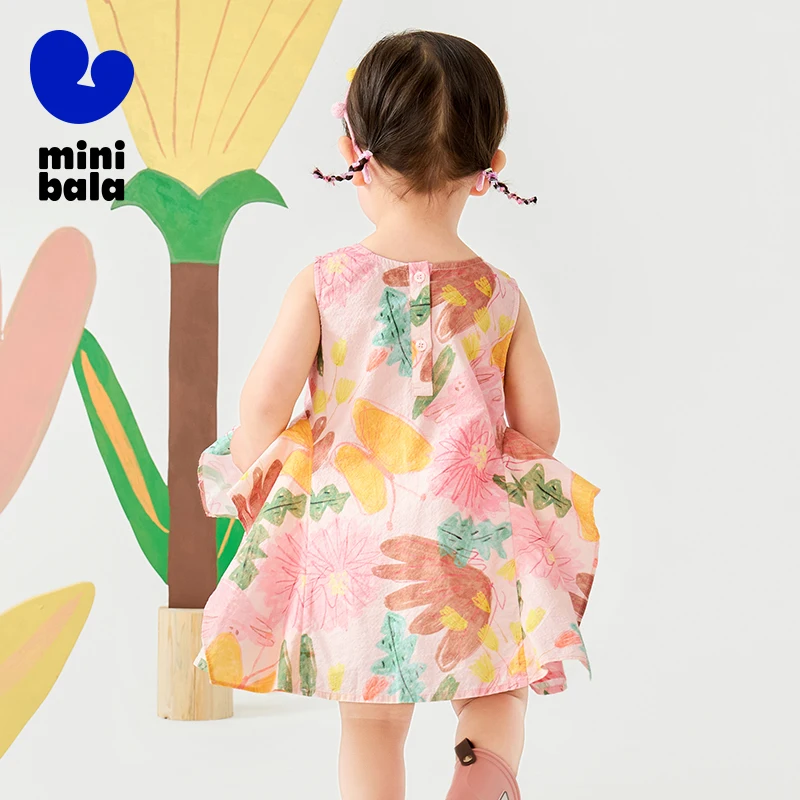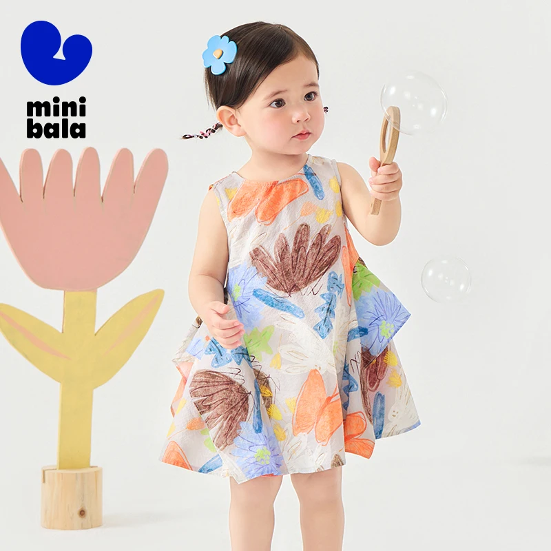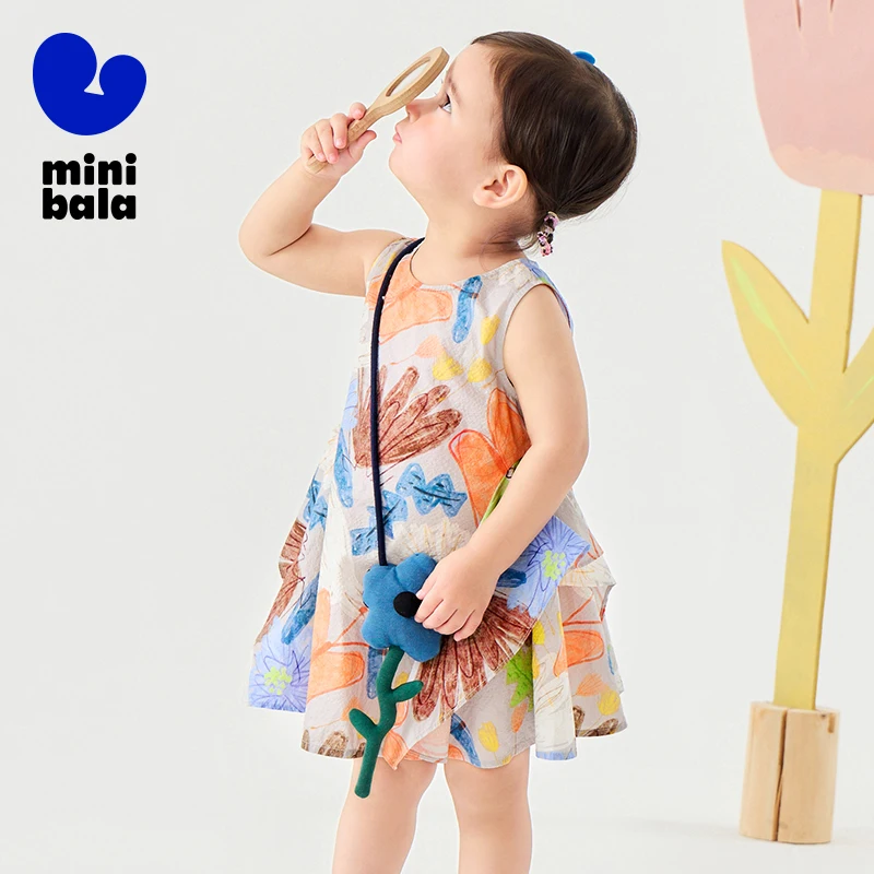 Mini Bala Girls Cotton Summer Dress Baby Floral Print Fashionable Dress 2025 Summer New Style