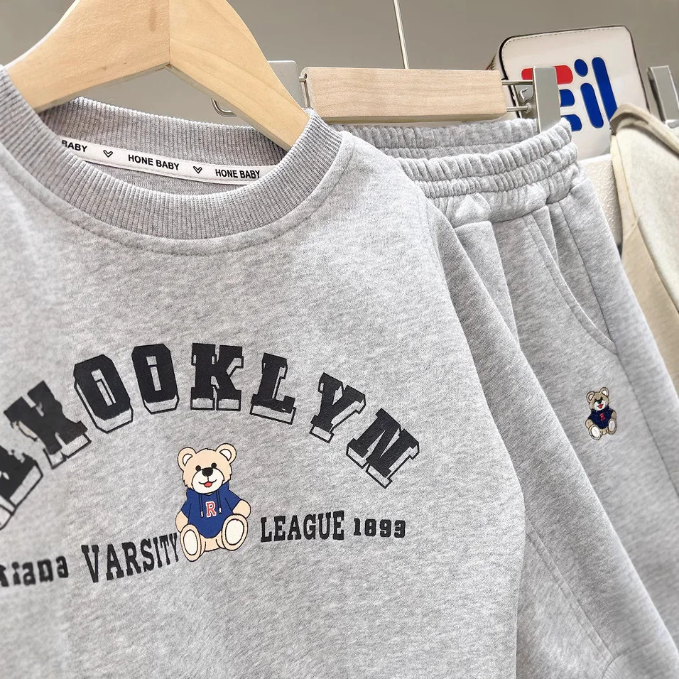 Spring Cotton Clothes Set Children Boy Fashion Cartoon Bear Printed Sweatshirts Pullover Top and Pants 2pcs Suit Casual Outfits