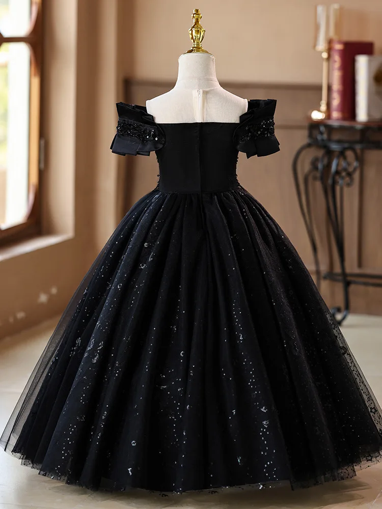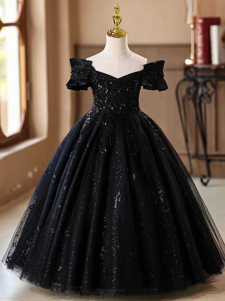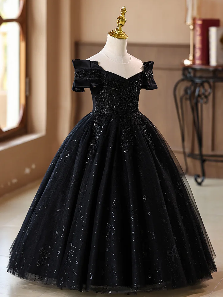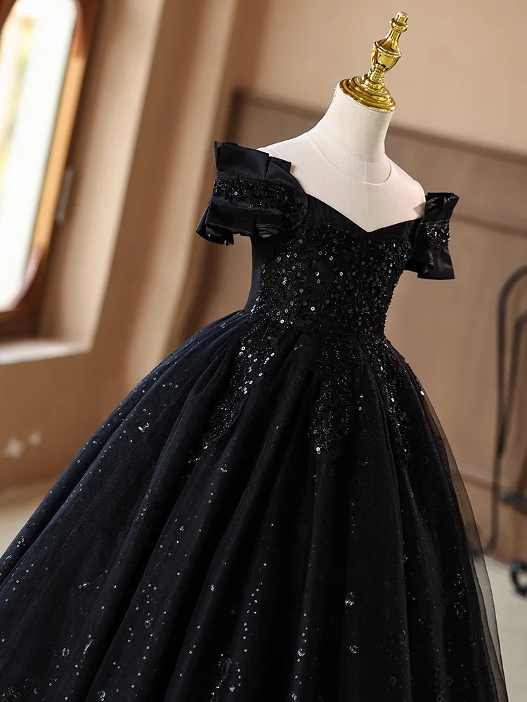 Teenager Girls Lace Sequins Tulle Princess Dress For Kids Wedding Party Ball Gown Birthday Formal Banquet Performance Vestidos