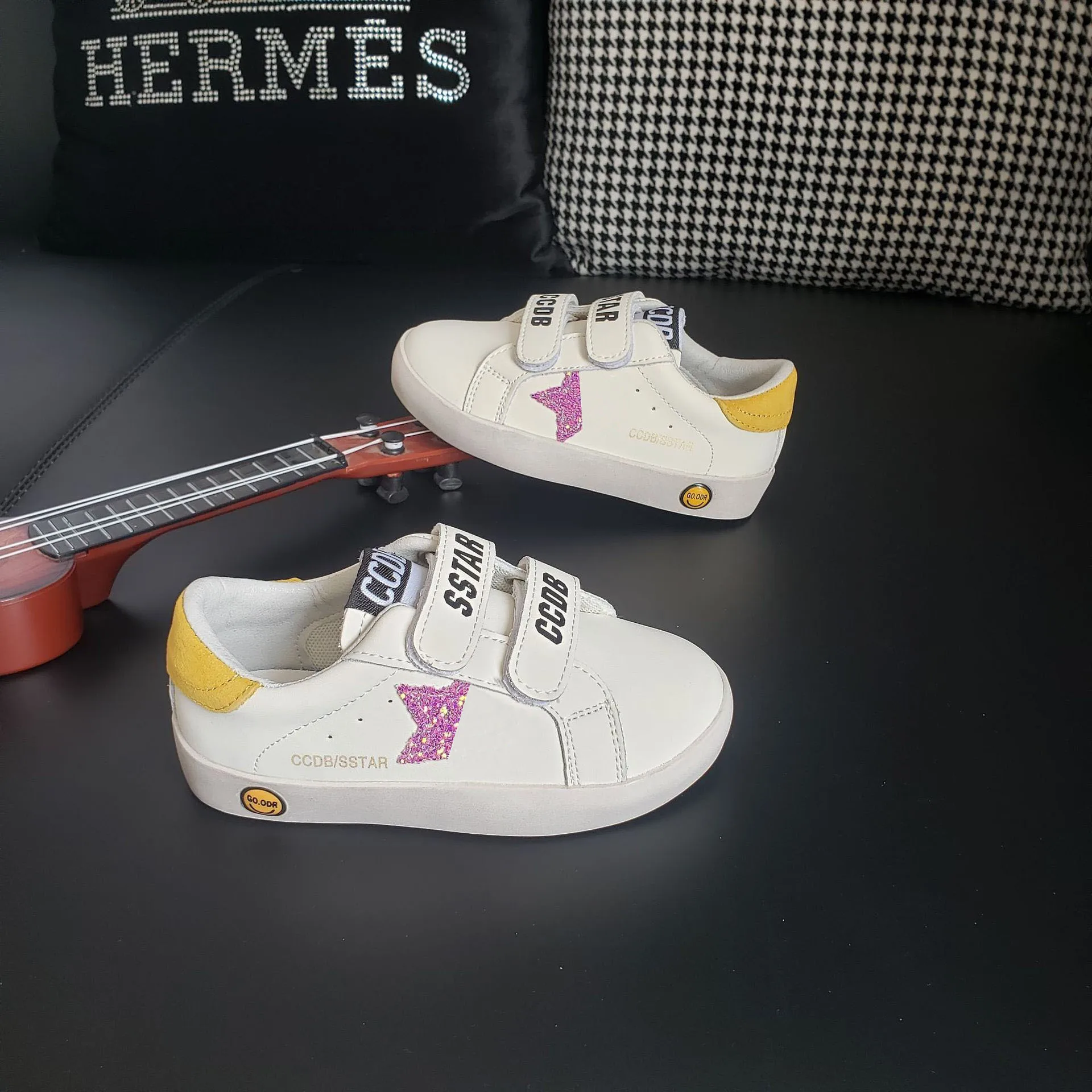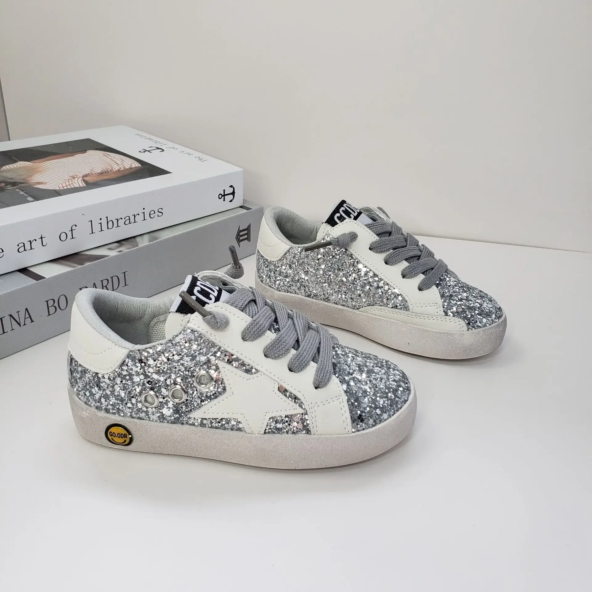 Casual Shoes Board Shoes Fashion Girls Solid Color Kids Shoes Lacquered Boys Soft Soled Velcro Front Lacing Sequin Sneakers