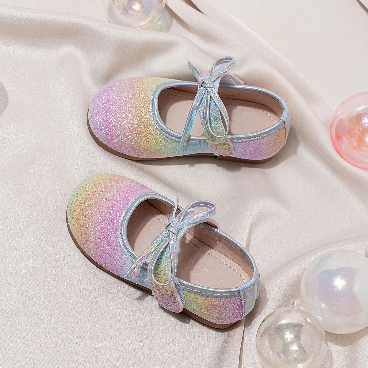 Girl'S Princess Shoes Glittery Rainbow Color Beautiful Autumn Kids Single Shoe Flat Mermaid Toddler Anti-Slip Children Shoe