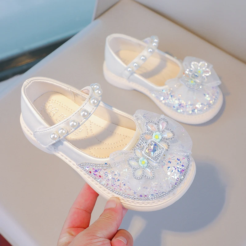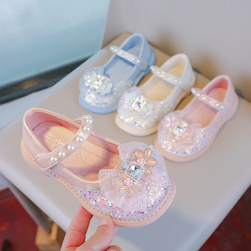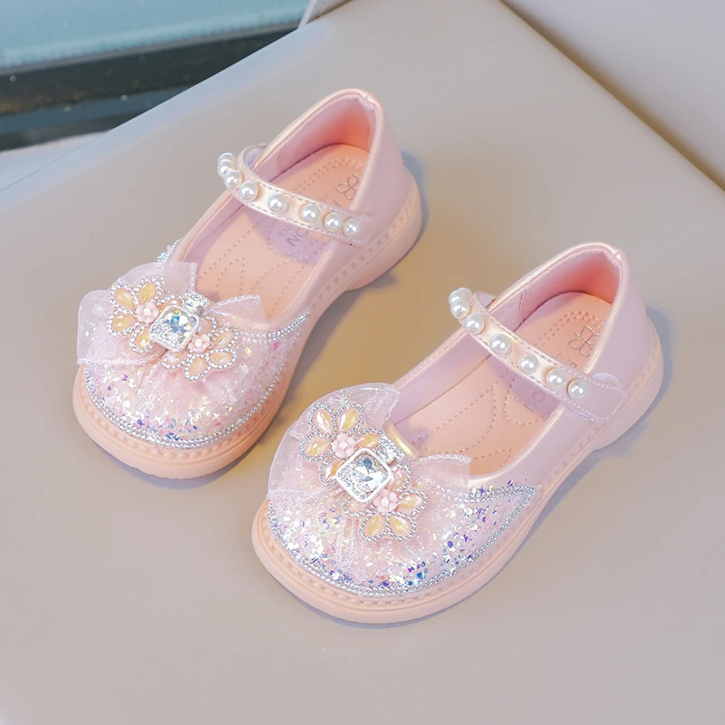 Hot Selling Lightweight Children's Comfortable Bow Soft Flat Shoes Spring and Autumn Fashion Princess Pearl Elegant Casual Shoes