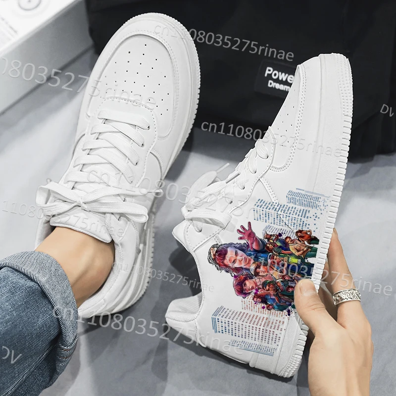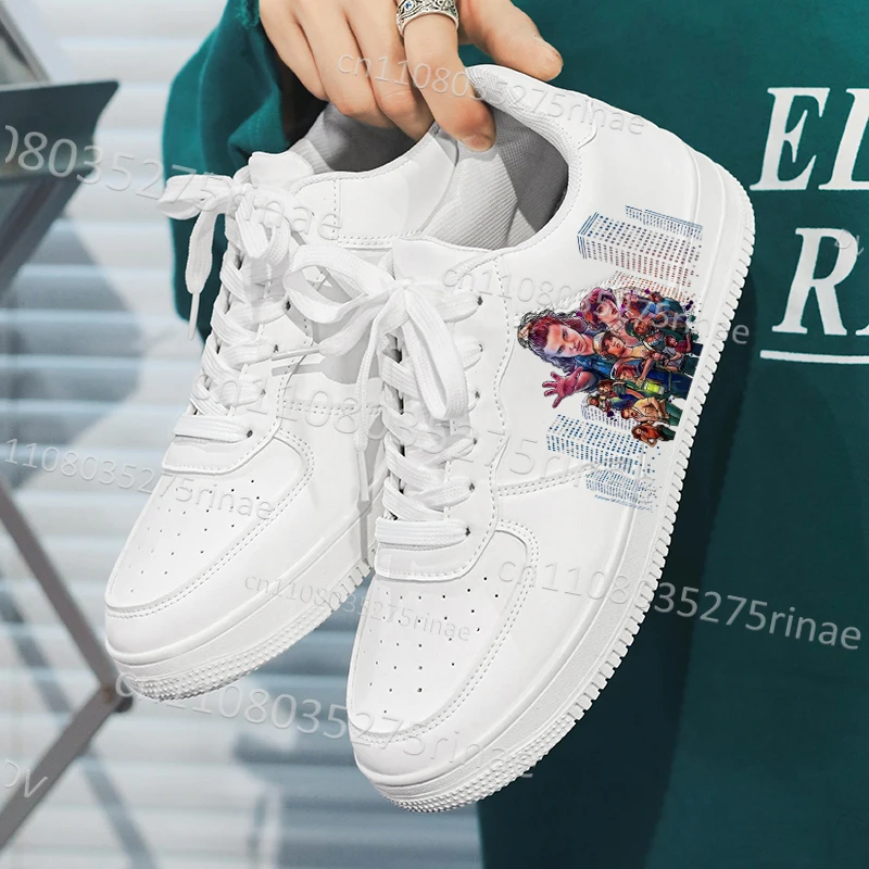 New Hot Selling breathable Strangered Things Children Adult White Shoes man woman Lace up White Sneakers boys girls gift