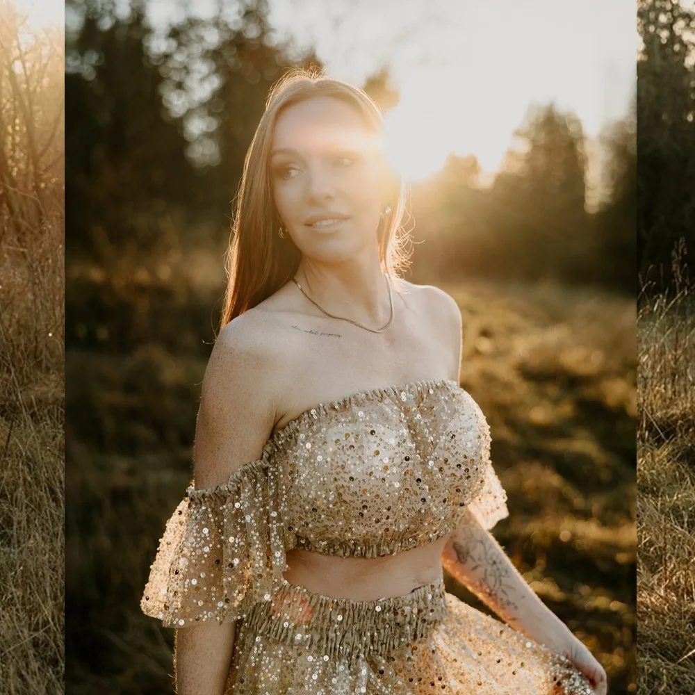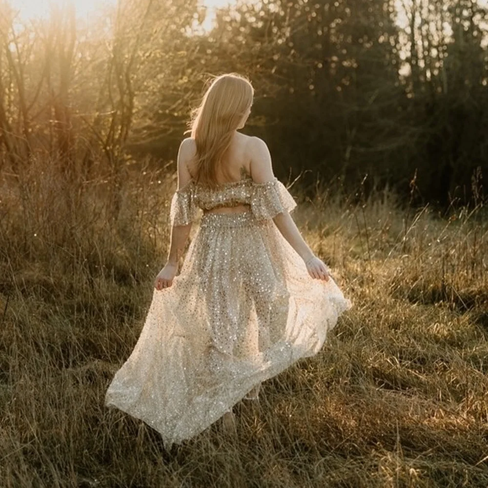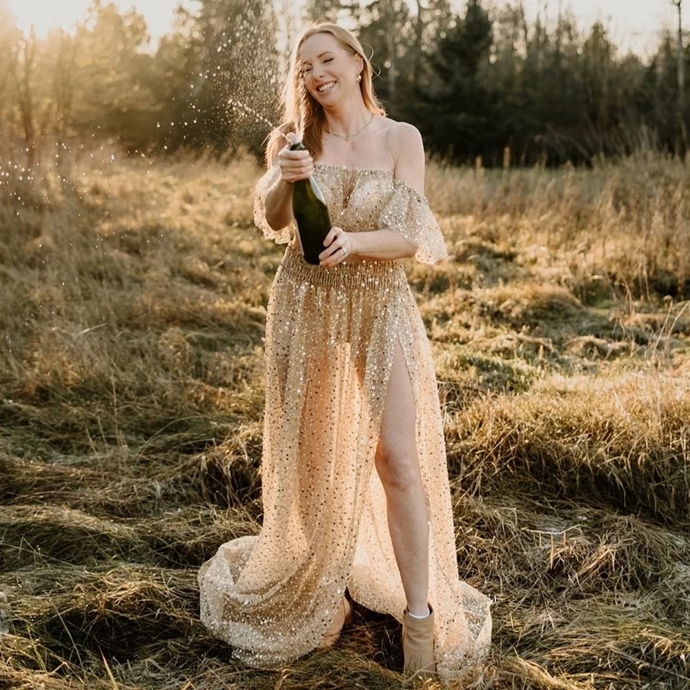 Elegant Photo Shoot Dress For Women Pearl Hard Yarn Sexy Off Shoulder Short Sleeved Dress Maternity Dresses For Baby Showers