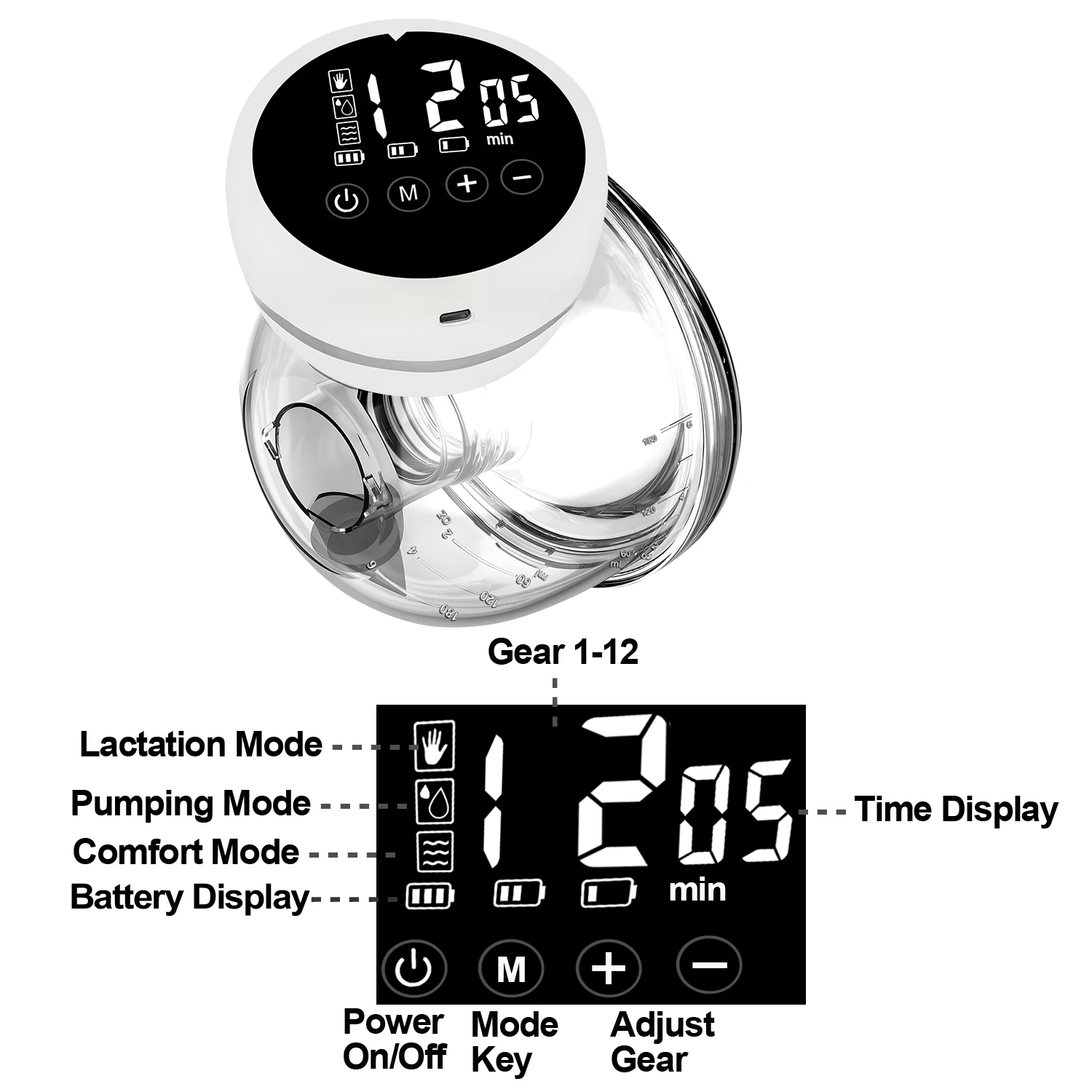 USB recharge, wear inside bra for pumping on-the-go without hands.