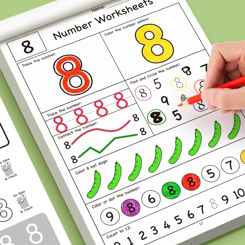 32-Page Illustrated Math Workbook Designed for Interactive Preschool Learning, Featuring Number Tracing 0-12 Practice Book