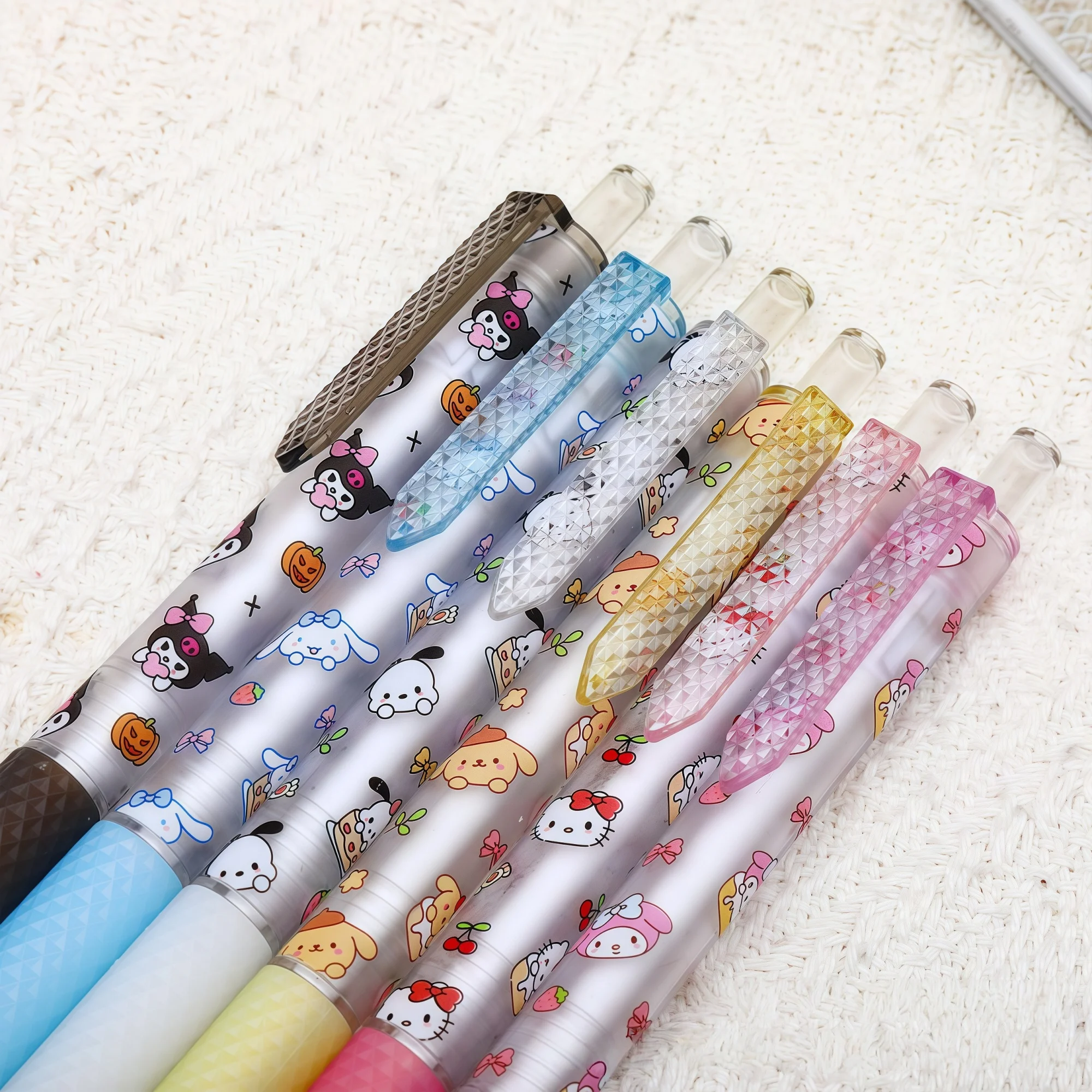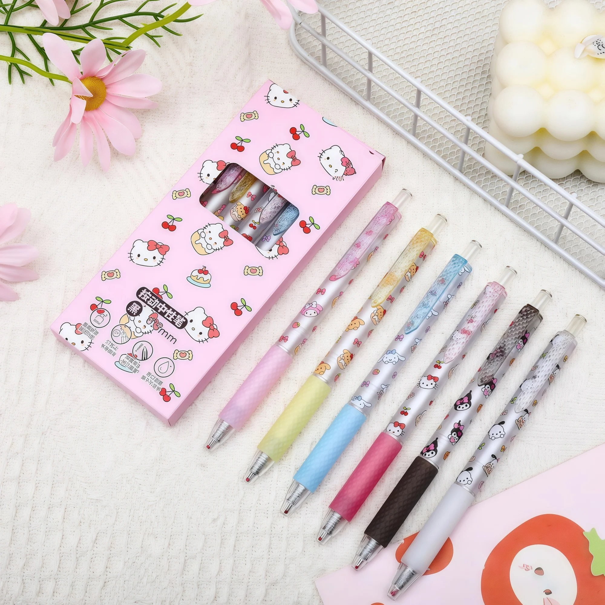 6pcs Cartoon Gel Pen Hello Kitty Latest Series Quick Dry Black 0.5mm Ballpoint Pen Student Stationery Supplies