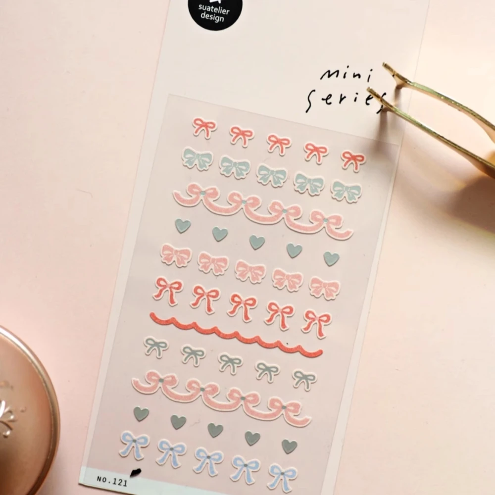 Korean Import Brand Suatelier Pink Silk Ribbon Bow Tie Mini Sticker Scrapbooking Diy Journaling Diary Stationery Sticker 121