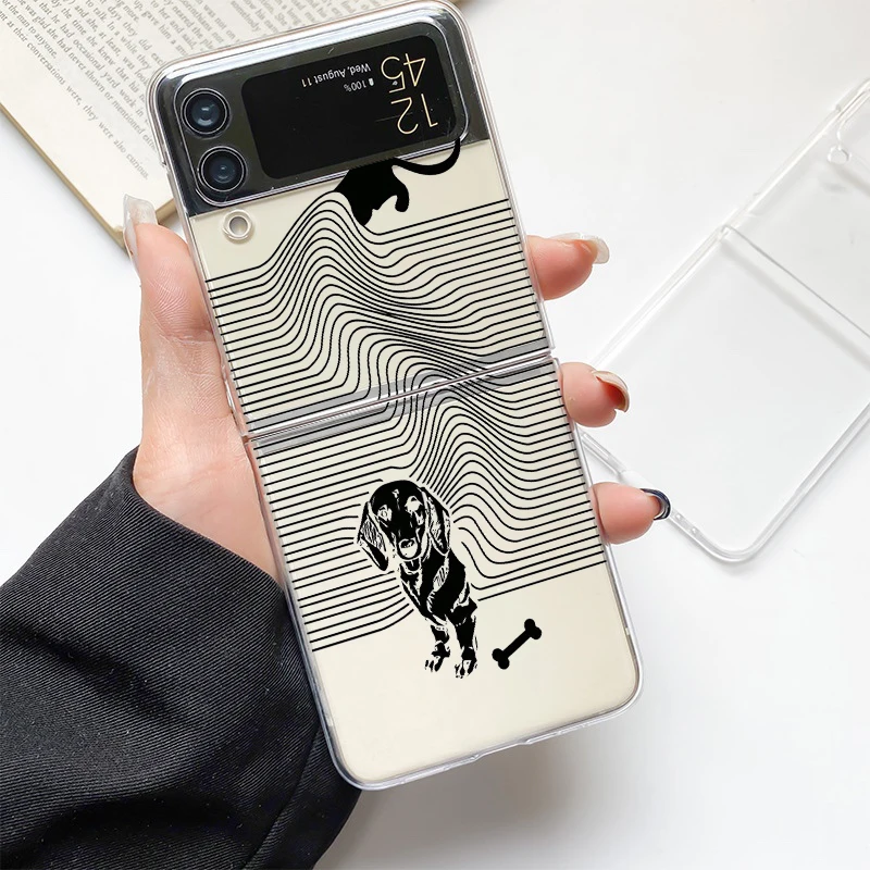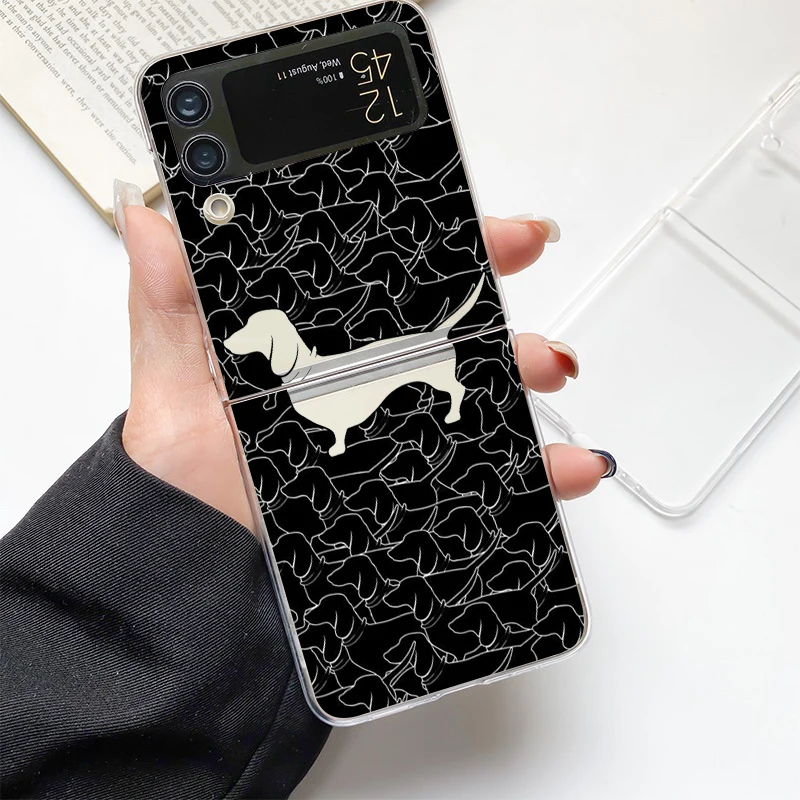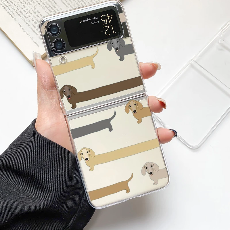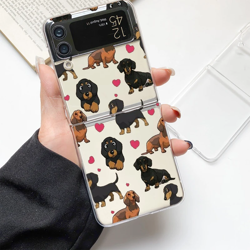 Dachshund Sausage Dog Phone Case For Samsung Galaxy Z Flip 3 4 5 6 fold High Hard PC Shell For Galaxy Z Flip 3 5 6 Clear Cover