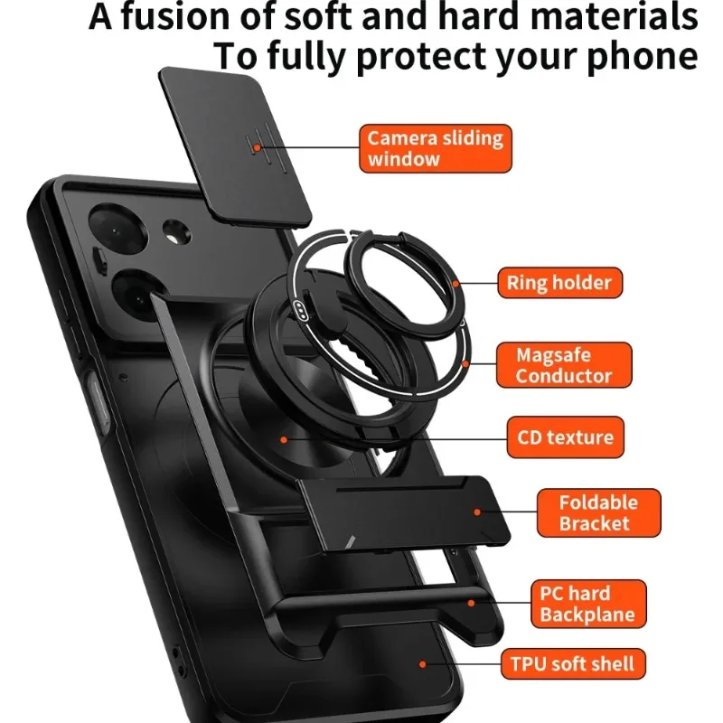 Luxury Rugged Armor PC+TPU Case For Xiaomi Poco X8 Pro Max X7 F8 Ultra F7 M8 M7 Pro 4/5G Slide Camera Enhanced Shockproof Cover