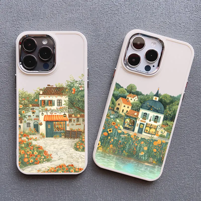 Oil Painting Garden Grange Countryside Fairy Art Phone Case For iPhone XR XS X 7 8 Plus 16 15 14 13 12 11 Pro Max Silicone Cover