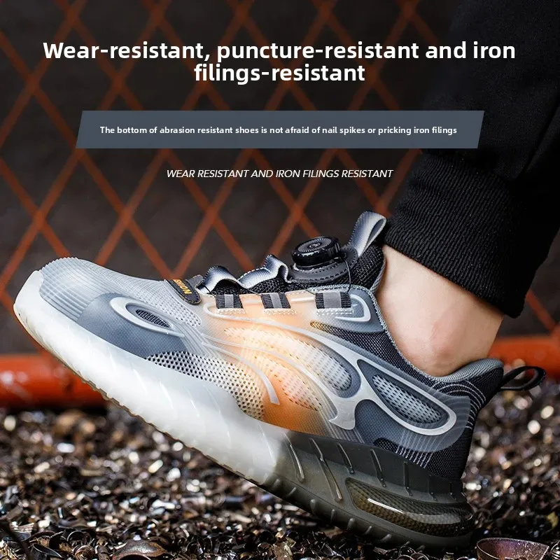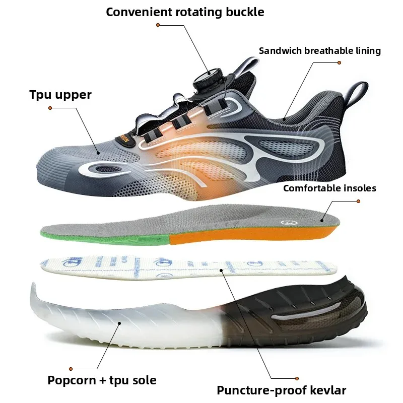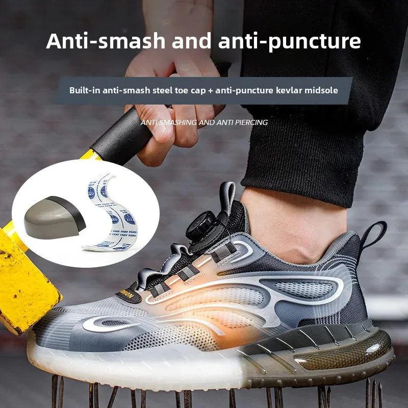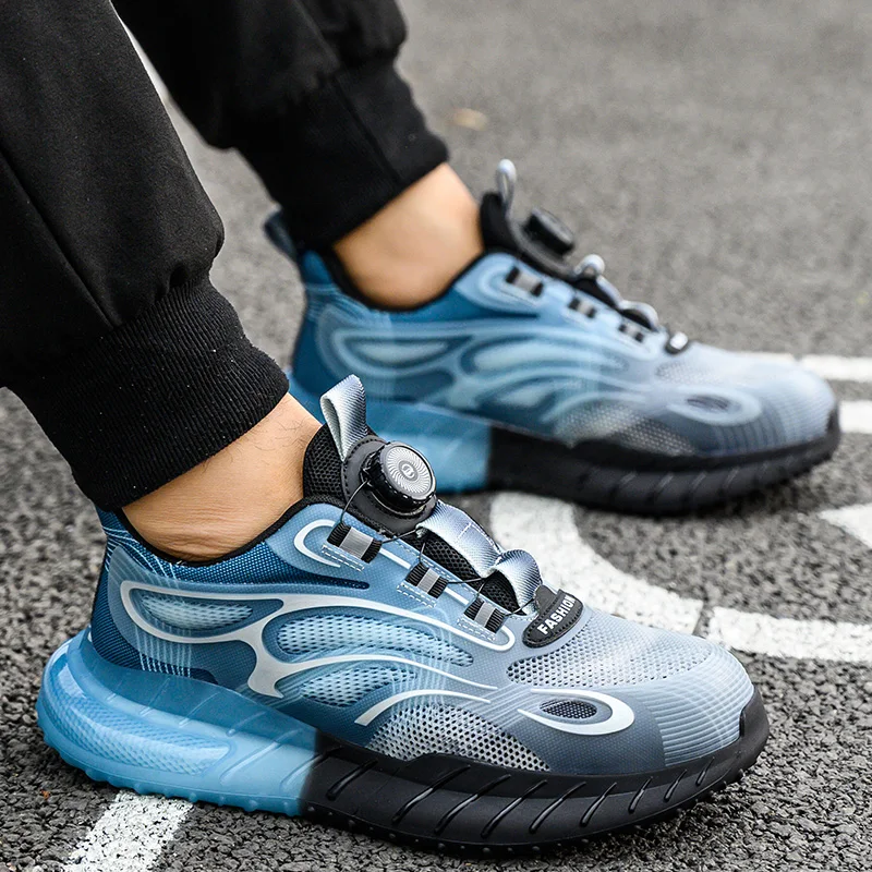 Fashion Men Safety Shoes Rotary Buckle Work Sneakers Protective Industrial Puncture-Proof Anti-smash Steel Toe Boots Footwear