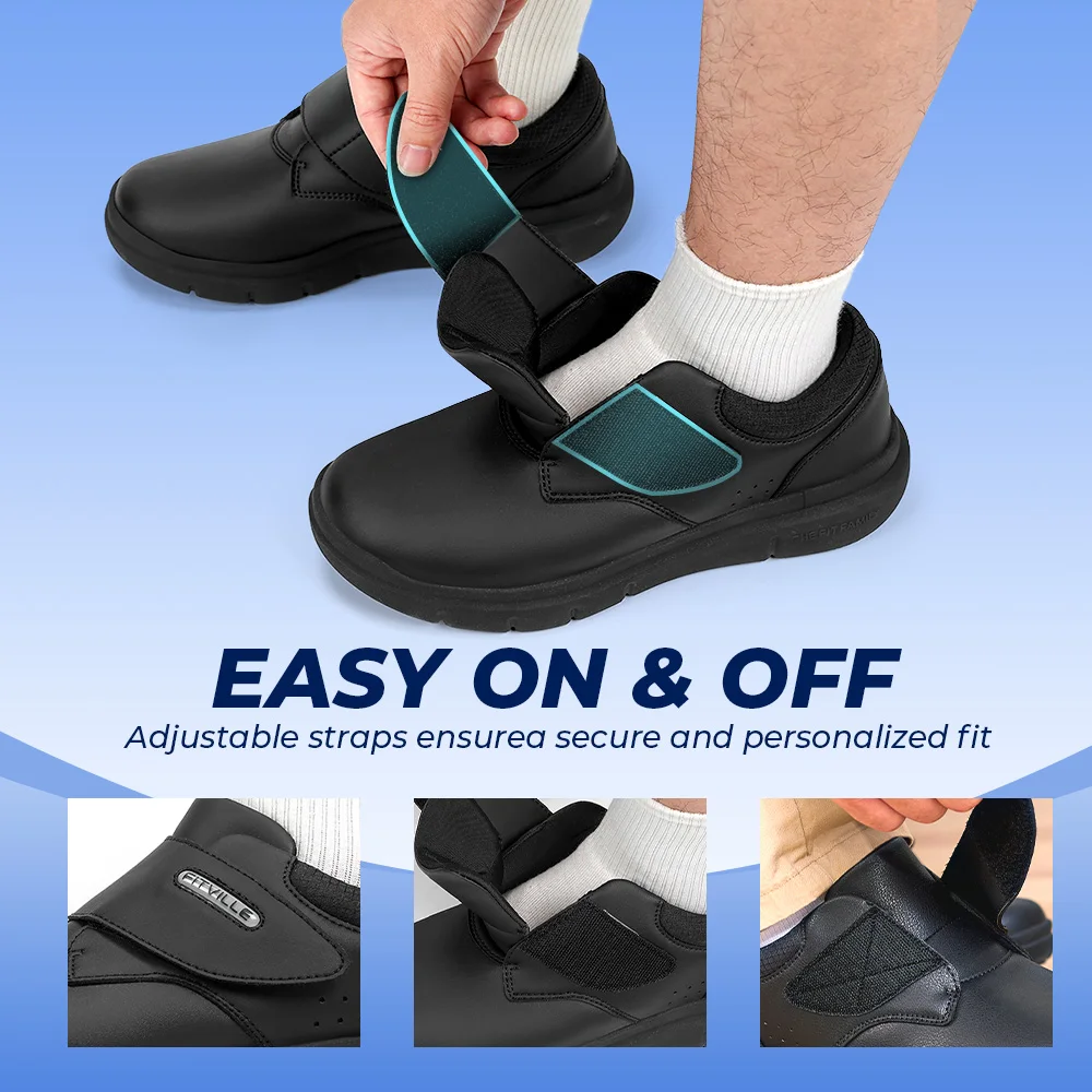 Yes, designed for men with diabetic issues, neuropathy, swollen toes; easy hook & loop closure for adjustability.