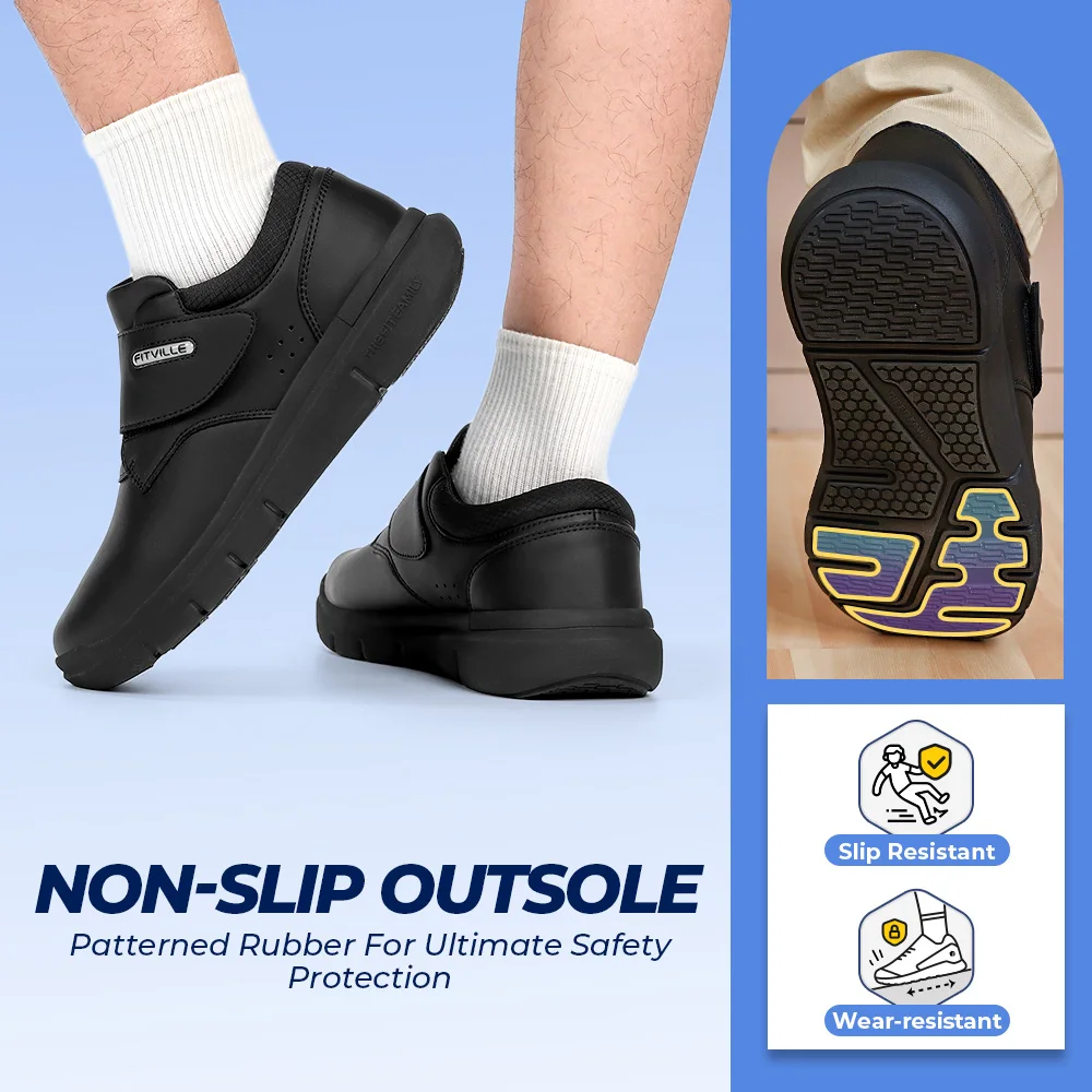 FitVille Extra Wide Men's Shoes Leather Diabetic Shoes Walking for Elder Orthopedic Toes Swollen Feet Non-Slip Arch Support